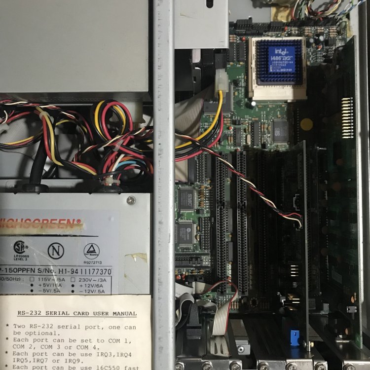 Riavviato il PC con scheda madre Chicony CH-471B Rev.1.0, la CPU è Intel 80486DX2-66 con dissipatore blu, chipset SiS 85C471 e 85C407, due slot VLB più altri sette ISA 16 bit, che si riducono a cinque, se installiamo due schede VLB. La scheda video è una VLB della Trident da 1 MB, non c’è una scheda controller, perché sono integrati nella MB, è presente anche una scheda audio ISA, SB Vibra16XV CT4170, il BIOS è AWARD v4.50G, con personalizzazione HIGHSCREEN visibile prima della schermata BIOS principale, la versione è una VBS1.04 CH-471B del 10/11/94. Le RAM 72 PIN attualmente installate sono due da 8 MB ciascuno, in totale sono 16 MB, penso che aggiungerò altri due RAM da 8 MB ciascuno, in modo da avere ben 32 MB totali. Volendo la scheda potrebbe facilmente avere ancora ️ più RAM, usando quelli da 16 MB o persino 32 o 64 MB, ma per adesso averne 32 MB è ben oltre il necessario, poi se in seguito dovessi installare Windows 95 o simili, magari potrebbe essere necessario, avere 64 MB o più. Prima di cambiare CPU, con un Intel DX4-100, farò una serie di bench, alcuni li ho già eseguiti, altri invece devo copiarli nel disco, penso di usare un adattatore IDE CF 40PIN, messo come Slave insieme al lettore CD, che però adesso noto che non è collegato, manca il cavo 40 fili, forse quel lettore l’ho messo su per riempire lo spazio vuoto, e per evitare che entri polvere, sarebbe quindi da verificare se funziona (?). Insomma nessun problema, userò un adattatore IDE CF 40PIN, collegato direttamente alla MB, e spero non ci siano problemi di rilevamento o di lettura , a volte capita in PC abbastanza datati.