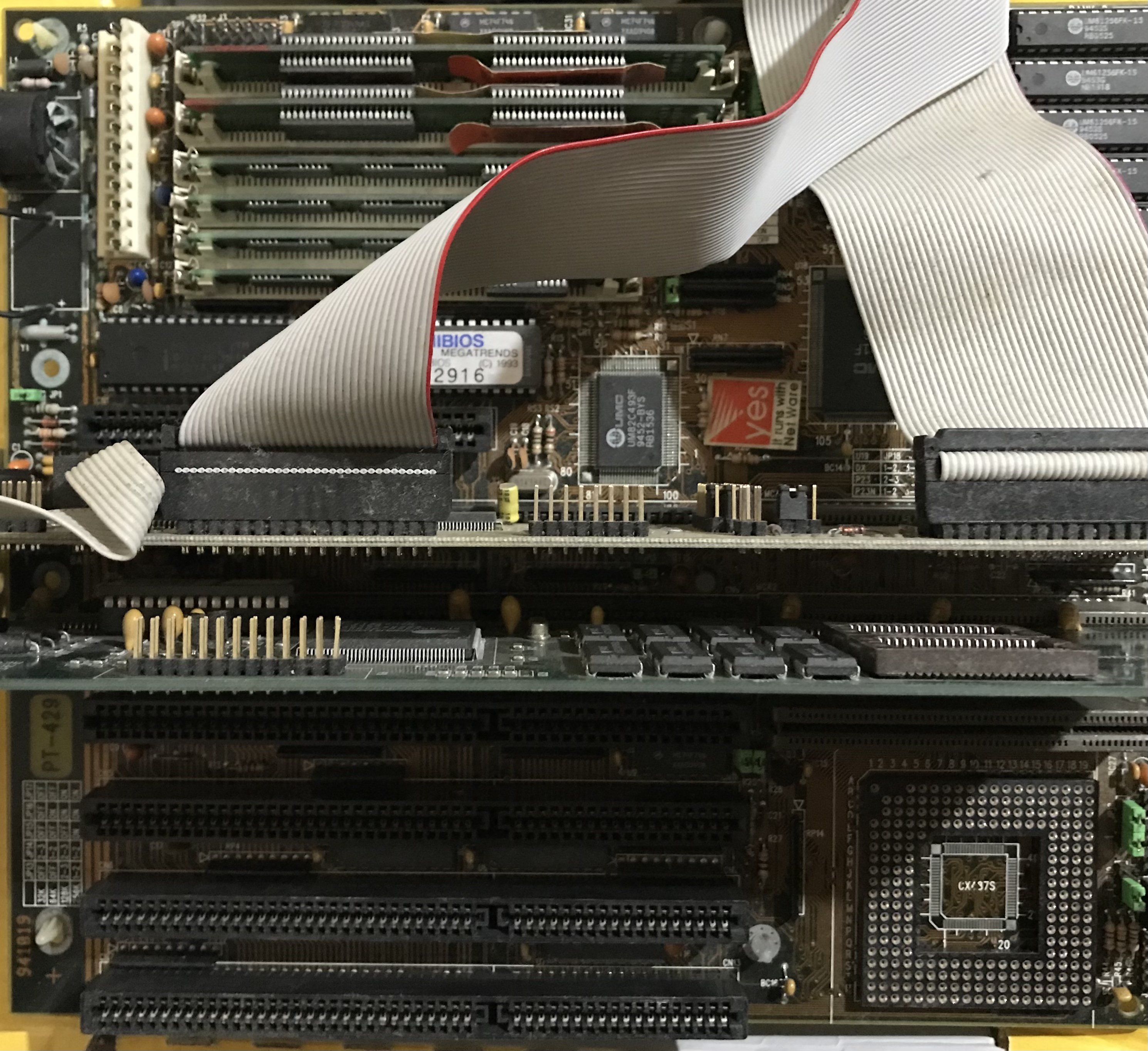 Per il momento sto cercando di salvare una copia del BIOS, della scheda madre PINE PT-2068.1, è un AWARD v4.50G ma il chip è un DIP28 con sigla 27XXXX, questi chip dovrebbero avere una finestrella per la cancellazione, ma a me non serve riprogrammarlo, servirebbe salvarne il contenuto, ho provato con AWDFLASH e nulla, non so se serva una versione specifica di questo programma, forse in alcune schede madri 486 questa utility, era fornita su un floppy . Per quello che riguarda le prestazioni, è da considerare attentamente, il cambio di CPU, non tutti i 486 sono uguali, e le MB più recenti, avevano una miriade di jumper e relative combinazioni, la strada più semplice sarebbe utilizzare un 486 Overdrive, ma specialmente il DX4-100, in questa scheda madre sarebbe un po’ limitato, visto che non c’è cache L2, quindi l’ideale sarebbe un 486DX2, visto che la scheda madre non ha il regolatore per tensioni VCORE inferiori a 5V, come vedremo la soluzione migliore sarebbe un interposer, e CPU iDX4 o AMD X5-133, perché queste ultime due CPU hanno una cache doppia (16 KB). Consideriamo adesso, il 486DX2 di Intel e AMD, nella versione classica da 66 MHz, a quanto sembra sarebbe la stessa CPU, e facendo alcuni bench i valori possono differire di poco, ai tempi però c’era differenza di prezzo tra i due, per cui si sceglieva in base al budget disponibile. C’era un alternativa, che era il Cyrix 486DX2-66, questo sembra fosse diverso dagli altri due, e complessivamente era più lento, ma aveva una cache integrata L1, sempre di 8KB, di tipo “Write Back” invece di quella “Write Through”, ecco questo per me è una cosa di cui non ci si preoccupa, e in mancanza di appositi jumper, si può rendere non ottimali le prestazioni, importante e non da ignorare il settaggio da BIOS. Quindi direi che in assenza di jumper, per il tipo di cache del 486, e di regolatore lineare per il VCORE, e di cache L2, sarebbe meglio usare un apposito interposer per installare CPU, Intel o AMD o Cyrix, quale dipende da cosa c’è disponibile, ma dai 100 MHz in su , va bene quella che preferiamo. Senza interposer, invece direi che la soluzione migliore è un 486DX2-66, da scegliere tra Intel o AMD, eviterei le versioni più lente tipo il 50, ma potrebbe essere usato in quelle schede madri, senza jumper e con quarzo da 50 MHz, senza dover cercare un quarzo più veloce. In definitiva sostituirò l’attuale i486SX25@33, con una CPU Intel i486DX2-66, devo aprire un altro PC per sostituire il DX2-66 (che recupererò), con una CPU probabilmente DX4 da circa 3V.