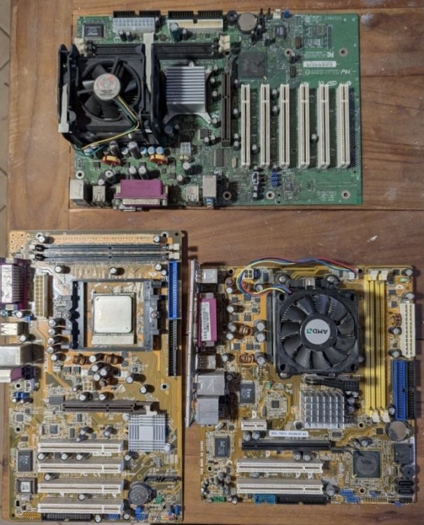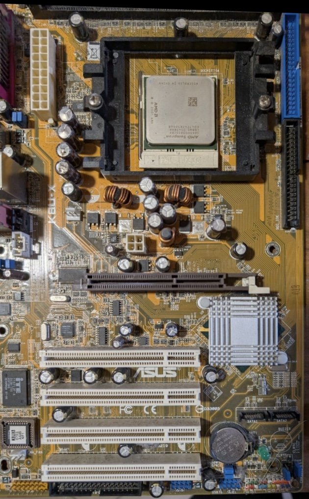 L’ultimo lotto di schede madri del 2025, è questo con tre MB, due ASUS e una Intel, i Socket sono 754 - AM2 - 478. Non avevo interesse a prendere altre schede madri da riparare, però questo lotto è costato poco, e le schede sono dotate anche delle CPU, sulla 754 si può leggere Sempron 3000, le altre due hanno su il dissipatore e non si può leggere nulla, in quella AM2 c’è incluso lo shield, vediamole una per una. Inizio dalla S.754, ASUS K8U-X con alcuni condensatori elettrolitici rigonfi in zona VRM, a parte questo sembra in normali condizioni, dopo la sostituzione dei condensatori elettrolitici, è molto probabile che possa tornare funzionante, il chipset è ULI, se non sbaglio si tratta di chipset ALi, che in seguito non so per quale motivo, hanno iniziato a chiamare ULI, per il resto mi sembra ben integrata, con audio e LAN a bordo. L’altra ASUS AM2 è una M2V - TVM/V, sembra in condizioni persino migliori, il chipset è VIA forse non è il migliore, ma trattandosi di una scheda AMD, è abbastanza comune trovare un tale chipset. Questa scheda a differenza delle altre due, dispone di slot PCI-E, per la scheda video c’è il 16X, ma per altre schede c’è un 1X, completano la dotazione di slot, due slot PCI normali, molto utili per utilizzare vecchie schede, anche se il formato uATX limita il numero di slot, qui ne abbiamo abbastanza, considerato che ci sono Audio e LAN integrati. Infine la scheda madre della Intel, una D845GEBV2 S.478, una classica scheda Intel che non offra molta scelta nel BIOS, di solito sono abbastanza limitati nelle opzioni, ma d’altra parte dovrebbe essere molto affidabile e con prestazioni abbastanza normali. Visto l’uso degli slot DDR per la RAM, dovrebbe essere adatta alle CPU P4-NW, probabilmente da 400 e 533 MHz FSB, guarderò il manuale ma credo che non supporta quelle da 800 MHz, anche se non mi dispiacerebbe affatto, ma per la presenza di soli due banchi RAM, non credo che sia supportato il FSB 800.