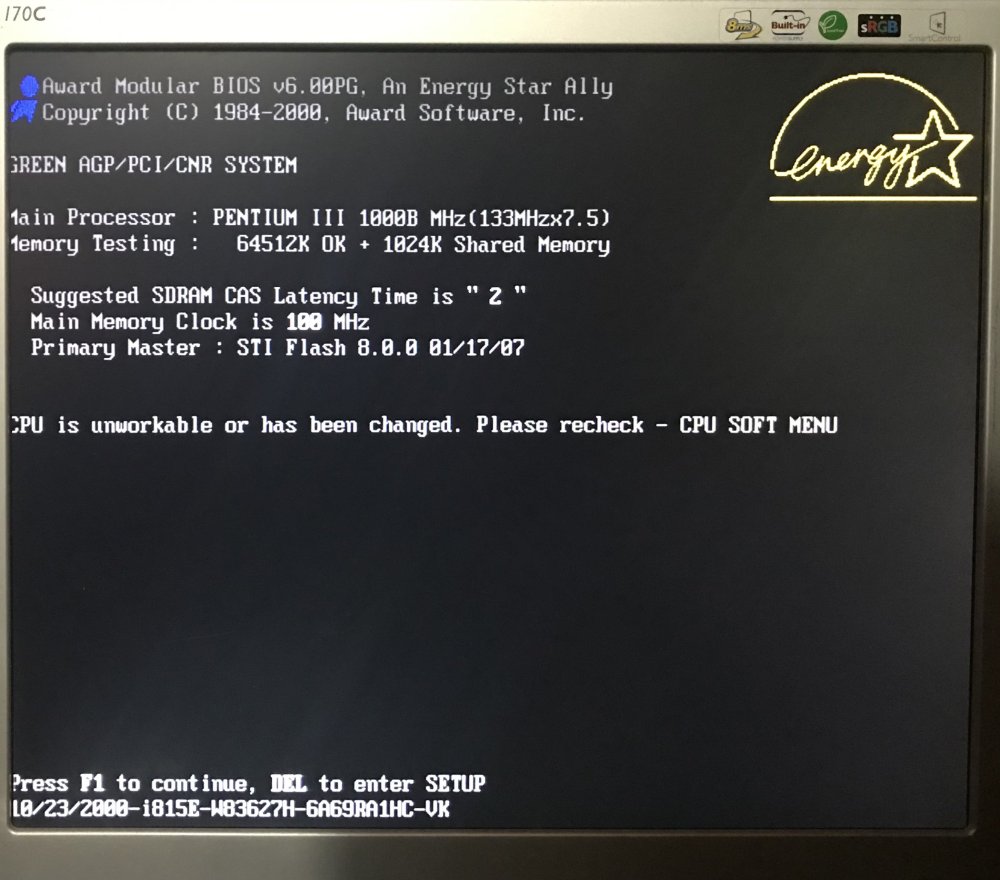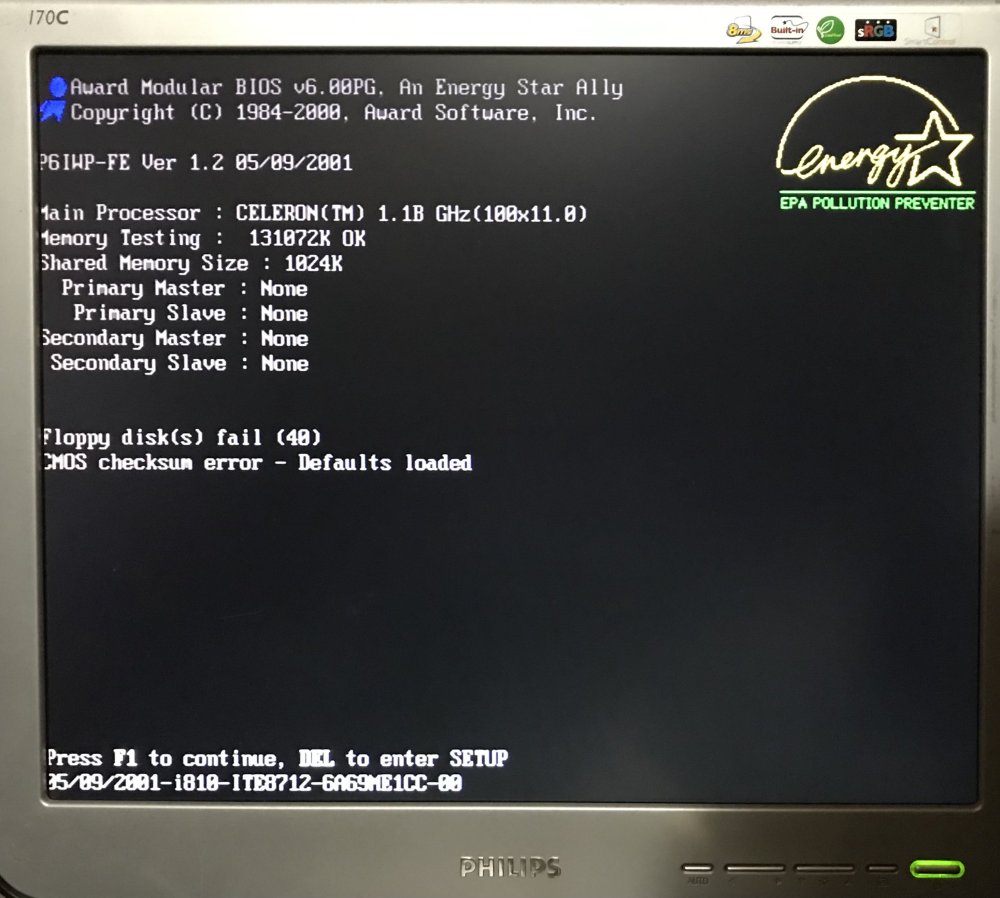 Pensavo che le CPU provate sulla MS6309, potessero essere ormai inservibili, visto il voltaggio oltre i 3V, ma per vedere se siano sopravvissute, mi serviva un’altra Scheda Madre, una che in passato ci ho provato tutte le CPU possibili (persino il VIA C3), e ho fatto alcuni overclock, purtroppo non sono riuscito a fare quello più interessante , il Celeron 1200 a 1600 MHz, ma a parte questo, per le prove che dovrei fare, è perfetto Prima di iniziare le prove, avvio con la CPU e la RAM che è presente, un Celeron 1100 (Coppermine), e un banco da 128 MB PC1XX, non ho messo per il momento l’adattatore IDE CF, con scheda di memoria CF con DOS e bench di Phil’s. Comincio a provare alcune RAM, tra quelle ne trovo una da 256 MB, che credevo di capacità inferiore, dopo averne provate alcune, inizio a provare quelle di taglio piccolo, 16 32 e 64 MB, forse 64 non sono proprio piccolo, ma per alcuni PC con un solo slot SDRAM, potrebbe essere l’unico modo per avere più RAM, man mano che le provo, inizio a scartare quelle che non funzionano, una però osservandola meglio, ha un problema visibile! Lascio a voi ogni possibile commento, la RAM funziona! Alla fine dei test con le RAM, trovo una dozzina o più RAM guaste, più un paio problematiche, una di queste non rileva il giusto quantitativo (128MB), ma si ferma su uno strano valore appena sopra i 64 MB. Passo alle CPU, e funziona sia il Celeron 466 che il 900, fortunatamente non sono stati overvoltati, e non sono loro ad impedire l’avvio, proseguo i test con altre CPU che ho sul banco, e trovo un P3-1000 rotto (nessun codice post), e un Celeron 1000 che si avvia ma segnala un problema alla RAM (inesistente), queste due le metto via, in queste condizioni sono inutili e creano problemi che non ci sono.