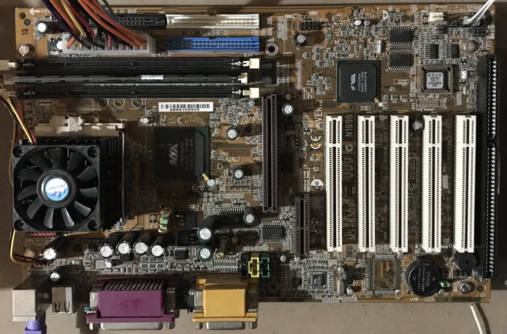 Ho provato poco fa, una delle schede madri che tenevo in attesa, faceva parte di un lotto di schede madri, e dopo una bella pulita, ho sostituito non molto tempo fa, un condensatore elettrolitico, aveva un ESR alto (1.54 OHm 🕉), per il resto adesso è in ottime condizioni, prima era molto sporca, specie in alcuni punti . Vediamo in dettaglio di cosa si tratta; il formato è uATX, la scheda madre è una MSI MS-6368 VER:5, S.370 ultima generazione, chipset VIA Apollo PLE133 (VT8601T), sono presenti due banchi SDRAM PC133/100, tre slot PCI e uno CNR, ci sarebbe la predisposizione per uno slot ISA, ma non saprei se saldandolo, se possa funzionare (?), infine c’è audio e video integrato. Per la prova di avvio ho utilizzato, una batteria CR2032 nuova, una SDRAM PC133 da 64MB, e infine un Intel Celeron 1200 1.5V. Inizialmente non capivo se ci fosse un problema al BIOS (?), poi è apparsa una scritta, e ho capito che si doveva aggiungere un disco di avvio, ho messo il solito adattatore IDE CF 40PIN con scheda di memoria CF con DOS, e anche se un po’ lentamente, ha caricato il DOS e ho eseguito i soliti programmi di bench. Con quelli di Phil’s, i punteggi sono questi: 2) 351.6 3) 254.4 4) 91.6 5) 157.8 6) 48.1 a) 414.94 b) 111.48 c) 128.5 d) 41.2 e) 12.5 n) 1369.82 Per il momento è tutto, in seguito proverò a fare alcuni overclock da BIOS, in teoria potrei arrivare da FSB 100 a 150, in realtà sarà abbastanza se riesco ad arrivare a 133, che corrispondono a 1600 MHz, purtroppo ci sono solo valori fissi quindi sono costretto ad usare solo quelli.