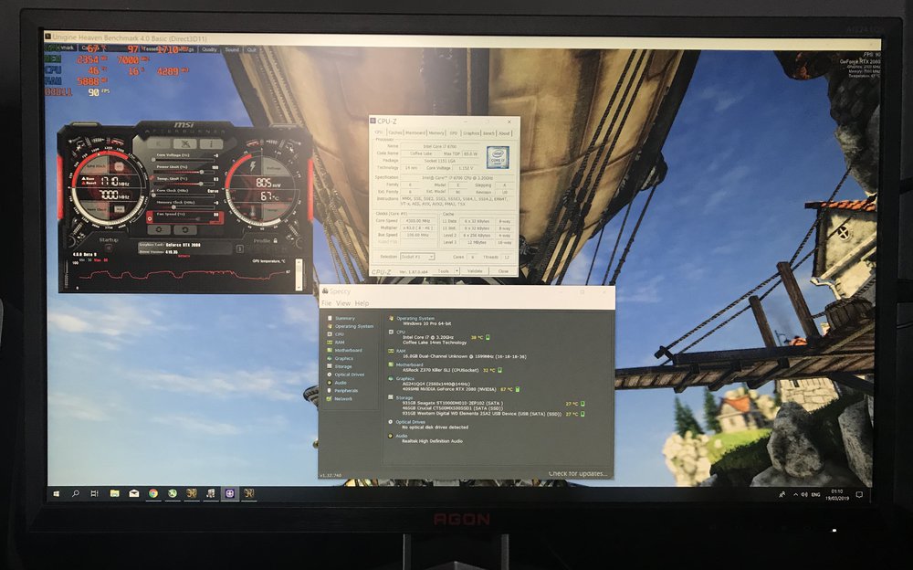 Ciao a tutti. Per passaggio a portatile, vendo il seguente PC. Info: Meno di 8 mesi di vita. 80% dei componenti acquistati su www.diginetstore.it Tenuto maniacalmente, come nuovo. In caso di acquisto il PC verra' consegnato formattato, con inclusa Key originale Windows 10 Pro. CPU: Intel i7 8700 CPU Cooler: Cooler Master Hyper 212 EVO Scheda Madre: AsRock z370 Killer Sli RAM: Corsair Vengeance LPX Black DDR4 3200MHz 16GB (2 x 8GB) GPU: Inno3D GeForce RTX 2080 Twin X2 SSD: Crucial MX500 500GB HDD: Seagate 1TB PSU: EVGA SuperNOVA 1600 P2 80+ PLATINUM 1600W CASE: Corsair Carbide 270R Ventole da 120mm in totale nel PC: 9 (Front + Upper + Back + Dissipatore) Monitor: AOC AGON AG241QX 24" 2560x1440 144Hz 1ms (G-Sync compatibile 100%) Regalo: Dissipatore GPU: ARCTIC Accelero Xtreme IV Adattatore PCI-E Wireless Asus PCE-AC56 AC1300 WLAN RAM: Adata Premier DDR4 2400MHz 16GB (2 x 8GB) KingDian SSD da 60GB Cuffie: Trust generic Como Headset PC/Laptop Prezzo: 1600,00 Euro. Non smembro, non divido, non scambio. Pagamento in contanti, ritiro a mano. Spedizione a carico dell'acquirente. Luogo degli oggetti: Monza (MB) Se siete interessati contattatemi in privato per piu' info.