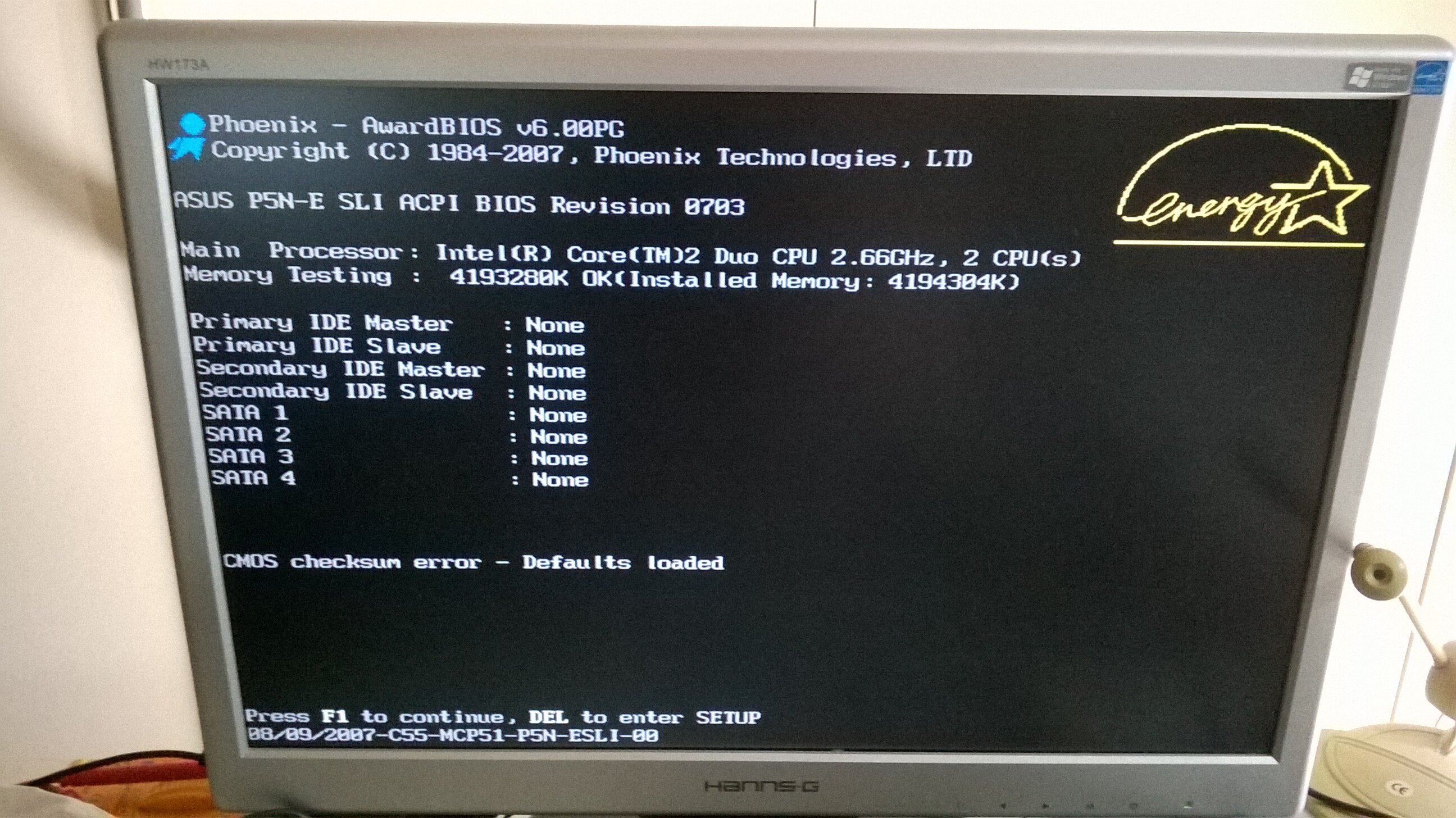 " width="16" /> la schermata iniziale del BIOS, se premo Canc. entra dentro, forse dovrei provare a vedere se c'è una impostazione Attiva/Disattiva errori, in modo che segnali ad esempio il Floppy Drive 1.44MB mancante, in questo modo potrei vedere come viene riconosciuta la CPU dal BIOS.