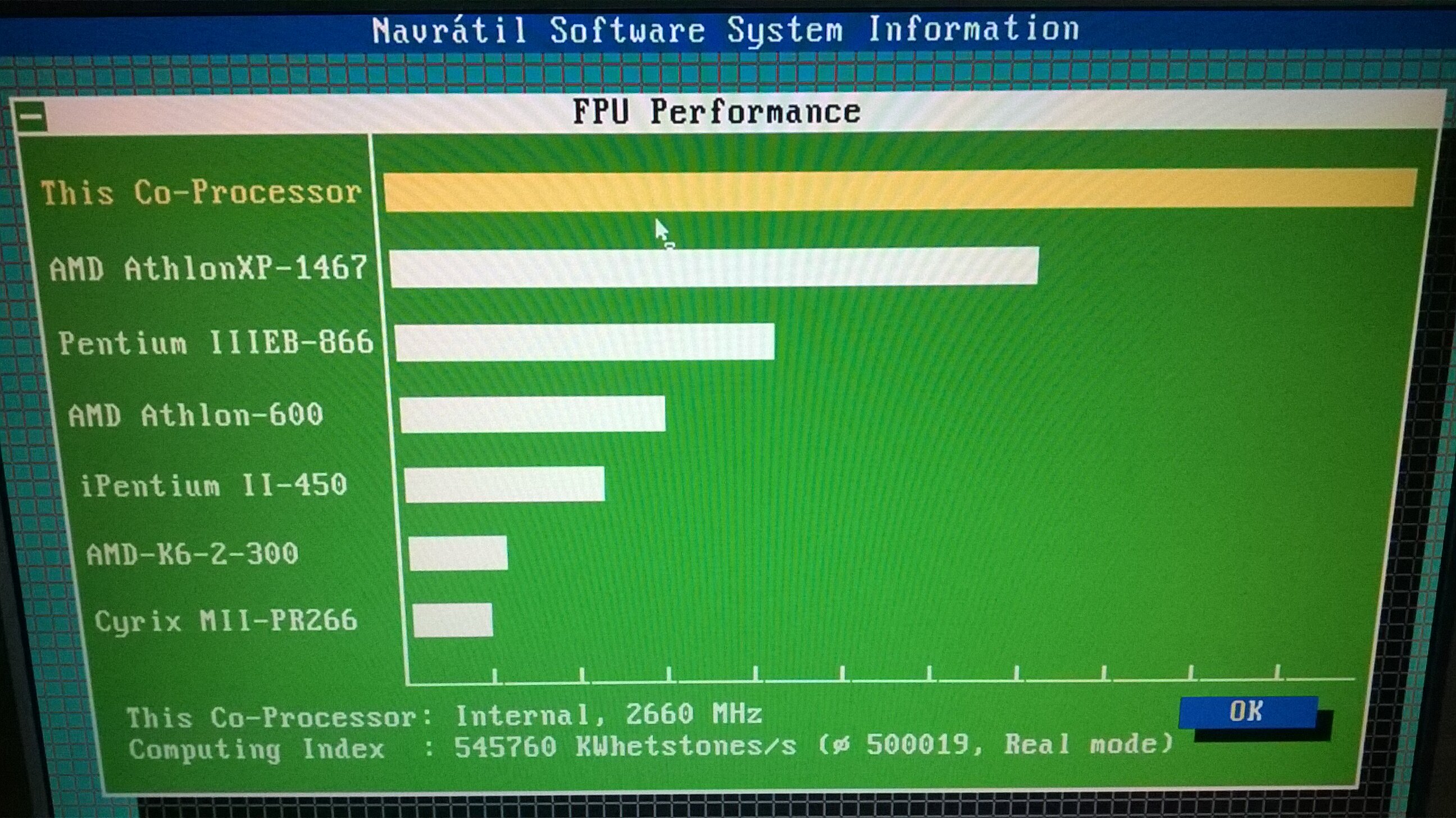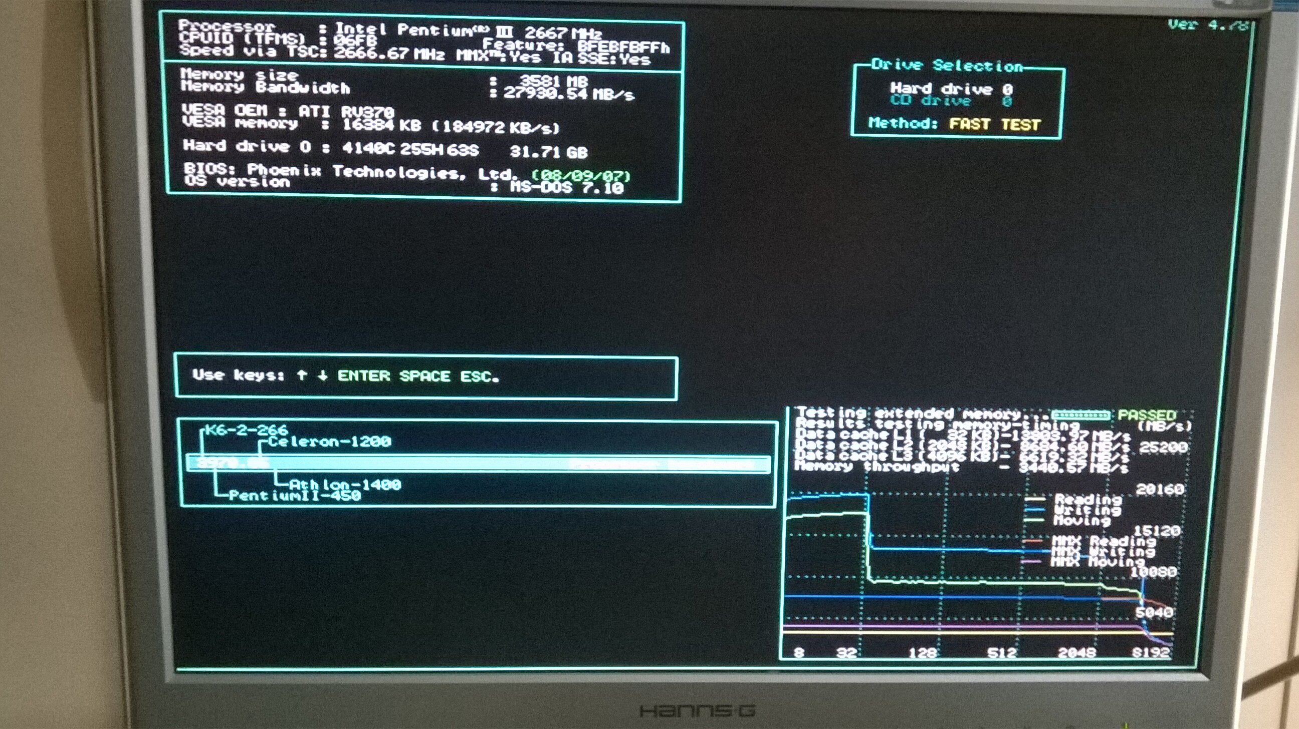 Prossimo passo sarà provare altri bench tipo super PI e altri per DOS, purtroppo al momento è impossibile testare il PC con SO più moderni, avendo 64MB di RAM è possibile far girare WME oppure il W2000, persino WXP girerebbe (anche se non al massimo).