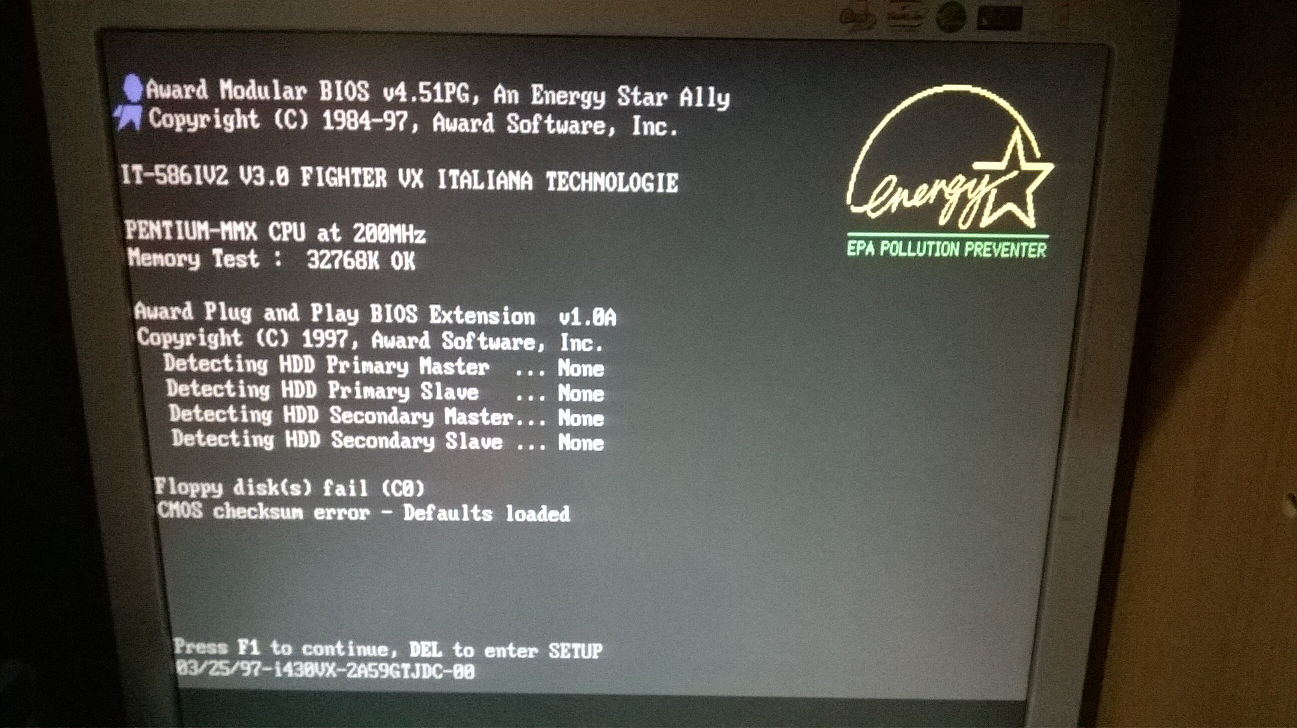 Il file è stato scaricato dal sito ufficiale, ed è una versione creata appositamente per PC molto vecchi, tra i riferimenti sono presenti varie CPU, partono dal 386SX e arrivano fino al VIA C3 da 1GHz, come riferimento ho usato il Pentium 100, se non erro è lo stesso dell'iCOMP, attualmente ho ancora su il P133 (va senza cache L2) ma conto di sostituirla appena configuro tutto, la cache integrata sulla MB ha qualche problema (che sparisce disattivandola), dalla scheda audio non ha ancora udito alcun suono (forse ci vogliono i driver originali SB CT4170), la scheda di rete chiede dei driver dato che non ho ancora individuato il modello della LAN-PCI IBM 10/100.