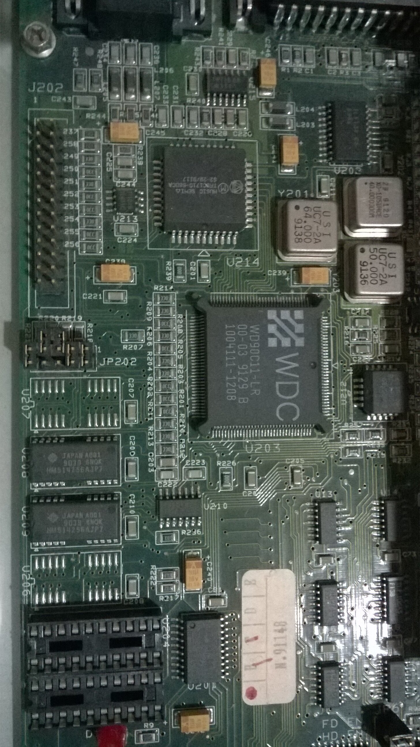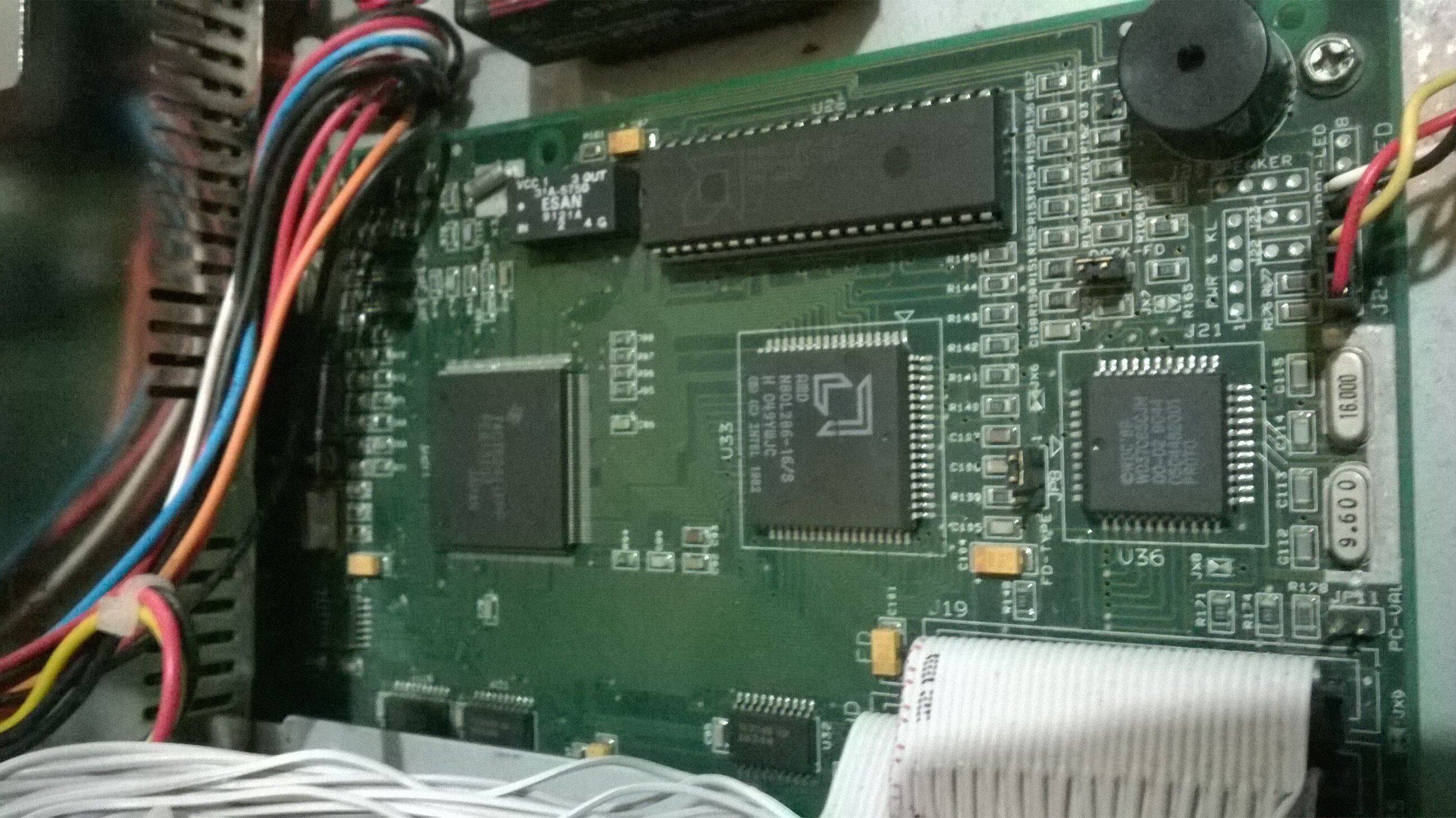 MB micro-AT (circa 22x17 Cm) con CPU saldata AMD 386SX 33MHz, BIOS AMI (versione color del 1990), 2MB di RAM 30 pin (2 da 1MB), scheda video ISA Hualon da 256KB, controller ISA (include le porte I/O).