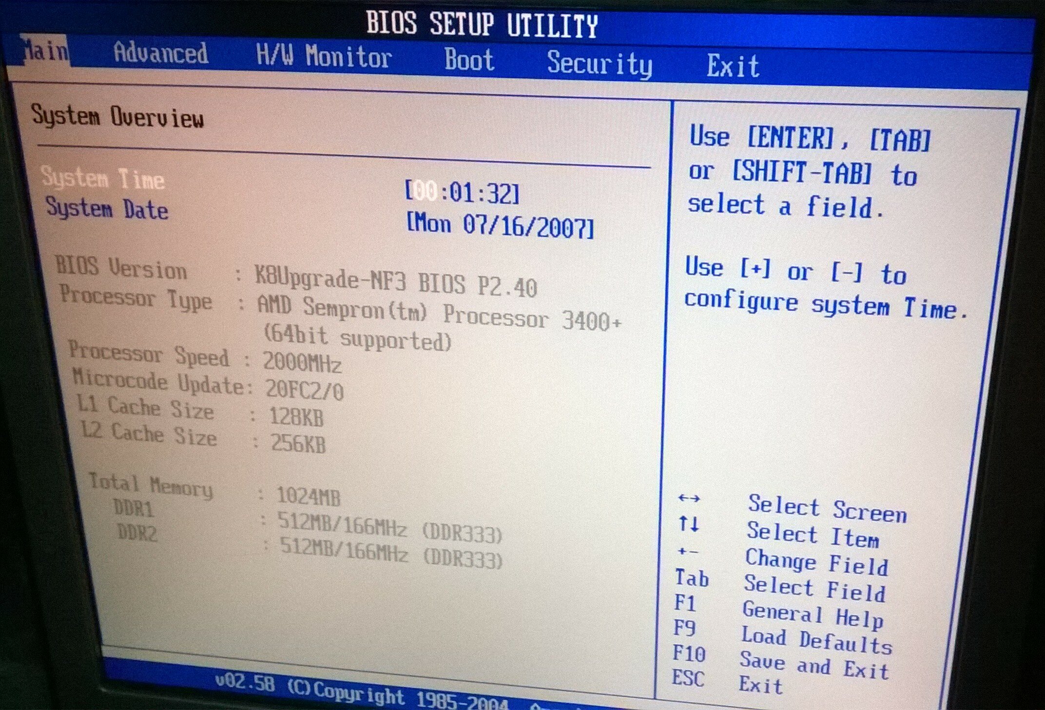 Entrando nel BIOS noto una cosa strana, le RAM vengono identificate come DDR333, mentre sono in realtà 400 (almeno così c'è scritto nell'etichetta della RAM), non che sia molto importante ma devo controllare se succede lo stesso in altri PC con la stessa scheda madre, per il resto sembra tutto ok, la CPU è in realtà un Sempron 3400+ da 2.0GHz con L2 da 256KB, forse non è il massimo installabile, ma considerato il tipo di cpu (oltretutto single core) dovrebbe essere abbastanza per un uso home office, per chi ha esigenze maggiori consiglio o l'upgrade tramite scheda Future CPU, oppure ci sarebbe un sito da qualche parte in cui usano CPU dual core per portatile, ma questa non è una cosa tanto semplice, prima bisogna trovare la CPU giusta e dopo bisogna adattare il dissipatore.