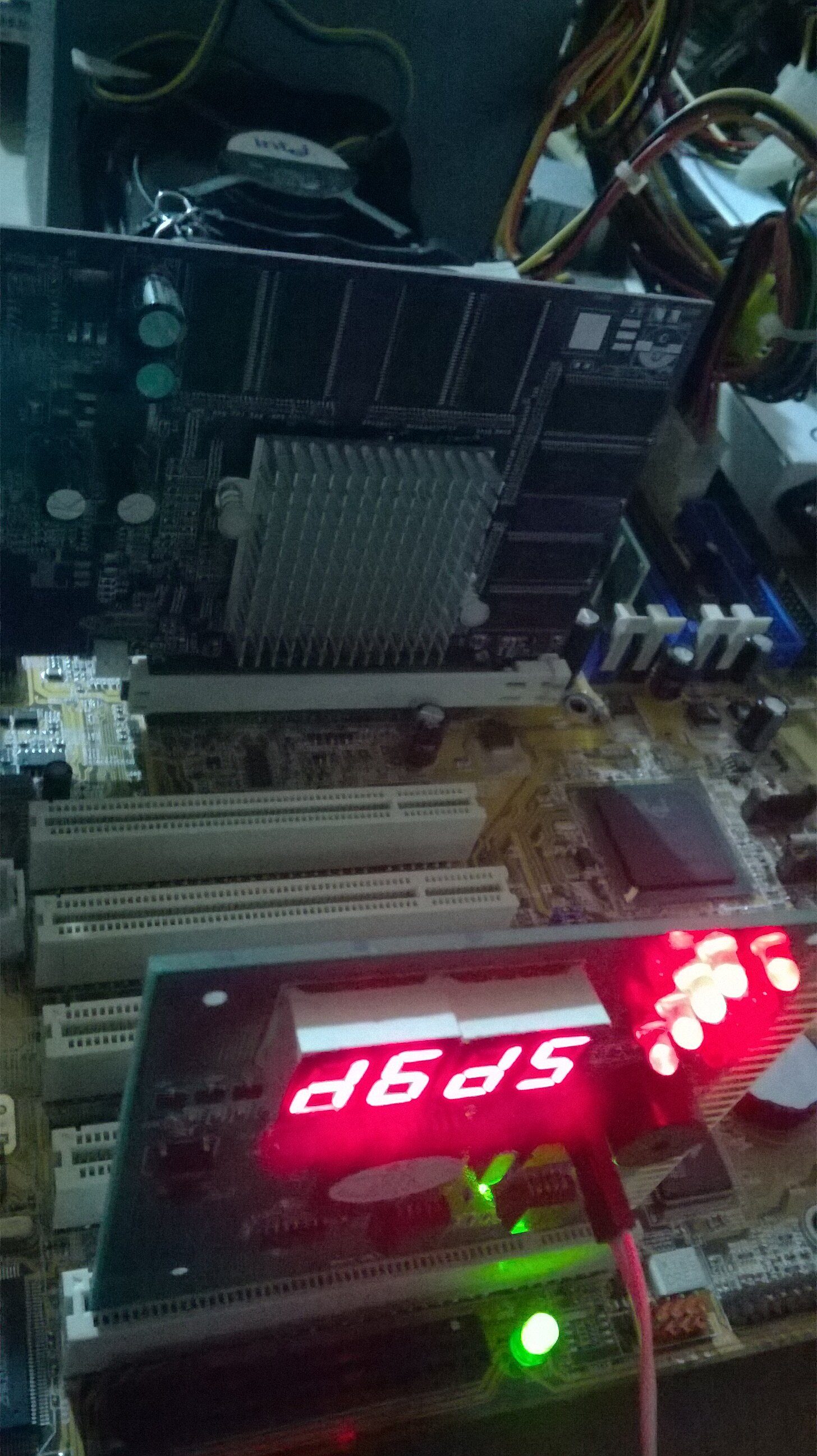 Decido di mettere qualcosa di più lento, tra i vari Duron che ho scelgo un 1300, che ha FSB200, e a questo punto si vedono apparire nel display vari codici, ma il display è nero??? Scopro che si è staccato il cavo di alimentazione, ricollegato ho a video la conferma che funziona!!!!!!