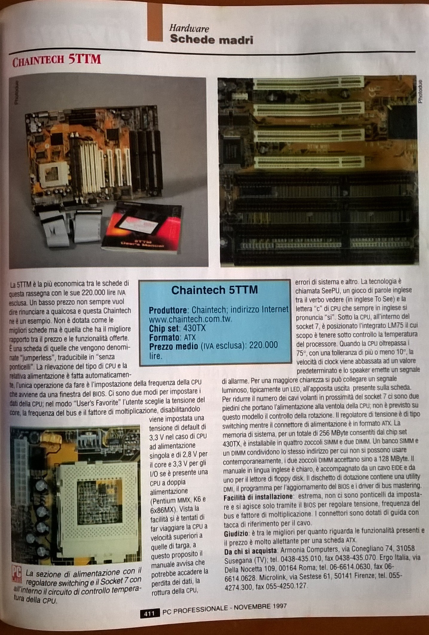 Ho comunque da qualche altra parte, prove o analisi di altre schede socket 7, di quella rivista in particolare ho un CD con i primi 100 numeri in pdf, se riesco a trovare il tempo di guardarlo e di tirar fuori qualcosa di interessante, magari lo allego qui (prossimamente).
