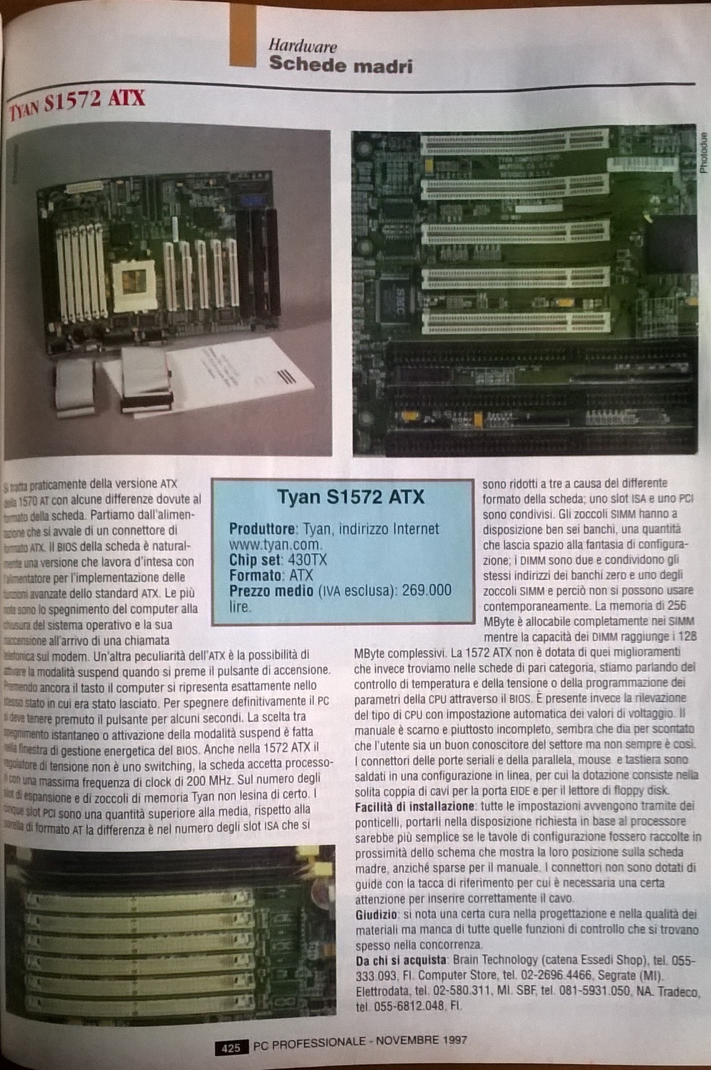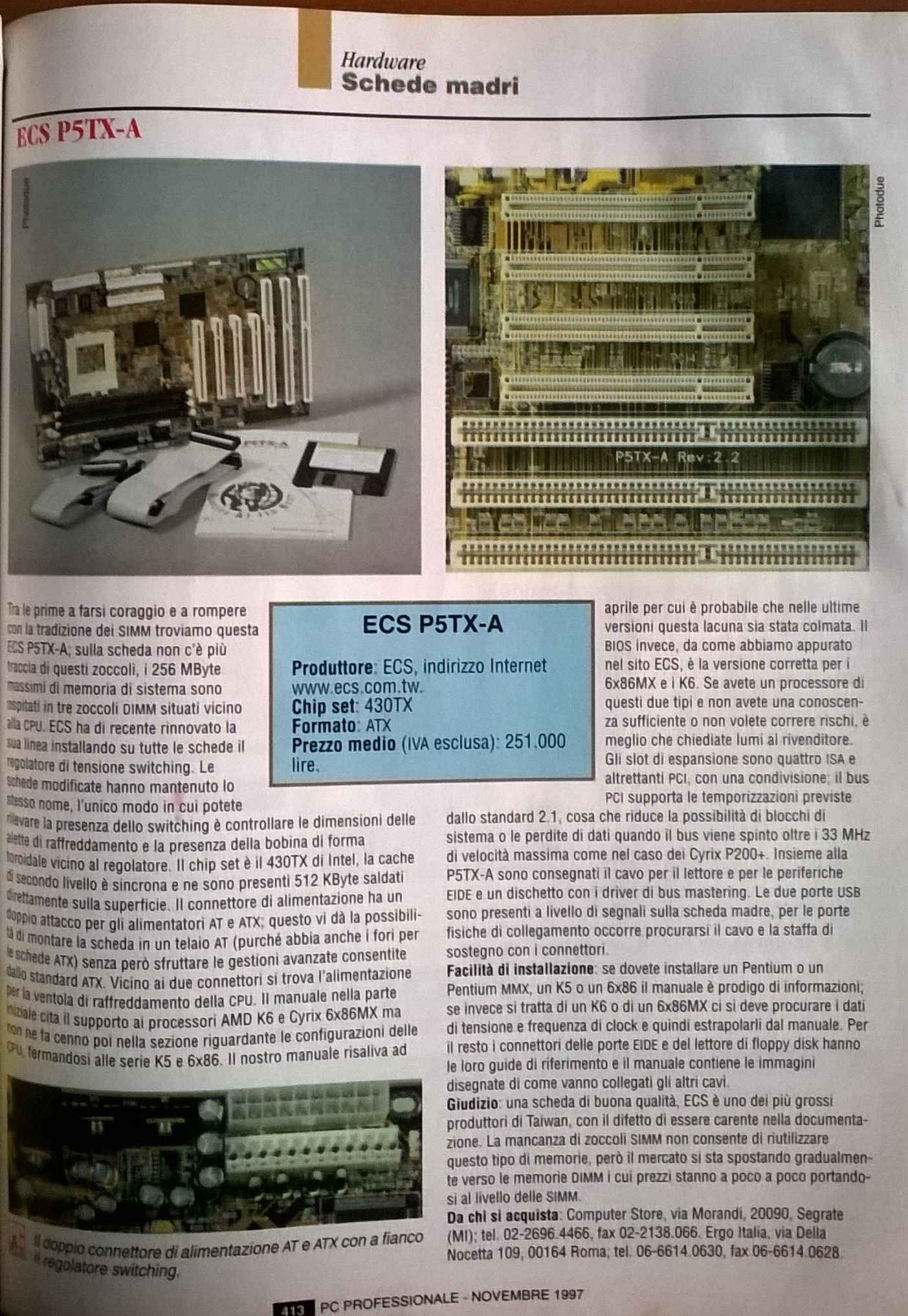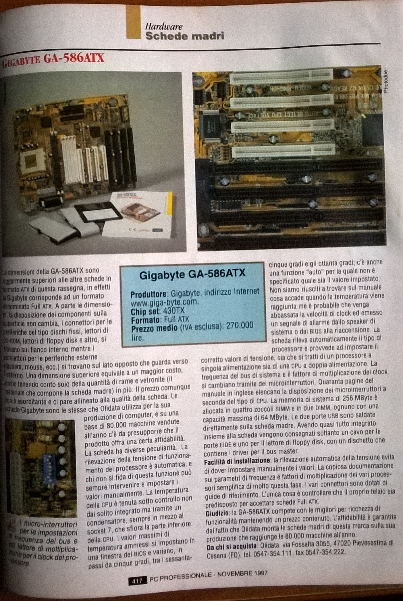 Prego, in verità piacciono molto anche a me, e di quelle vecchie riviste ne ho ancora da recuperare parecchie, alcune sono forse più vecchie, comunque solitamente le prove che facevano, erano di PC completi, ecco in quel caso era difficile trovare delle foto della scheda madre, al limite c'era una foto del PC aperto, ma se aveva parecchie schede installate, non è che si potesse vedere molto.