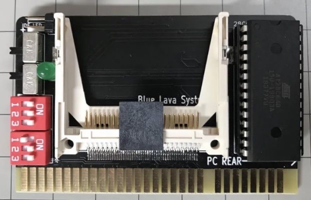 L’altro è in pratica un micro-controller ISA 8bit IDE-CF, può essere installato in PC preistorici, e dovrebbe funzionare come un HD, avendo un BIOS a bordo, dovrebbe permettere il funzionamento di schede molto capienti, insomma dovrebbe aggirare i limiti del BIOS senza troppe difficoltà, sicuramente avendo PC non troppo vecchi ?, basta ? usare l’adattatore tradizionale, ma se avessimo parecchie schede madri ISA, sarebbe molto comodo per testarle in breve tempo.