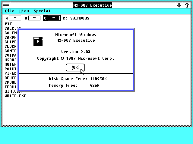 Metto un paio di immagini, per nostalgici e appassionati del genere, magari ? a qualcuno verrà in mente, con cosa ? si aveva a che fare a quei tempi, DOS delle prime versioni, e poi arrivò Windows, prima versione, purtroppo ? la versione 1 funziona solo sugli XT, per i 286 c’era la versione 2 per 286 (per i 386 era sempre 2 ma incompatibile con i 286).
