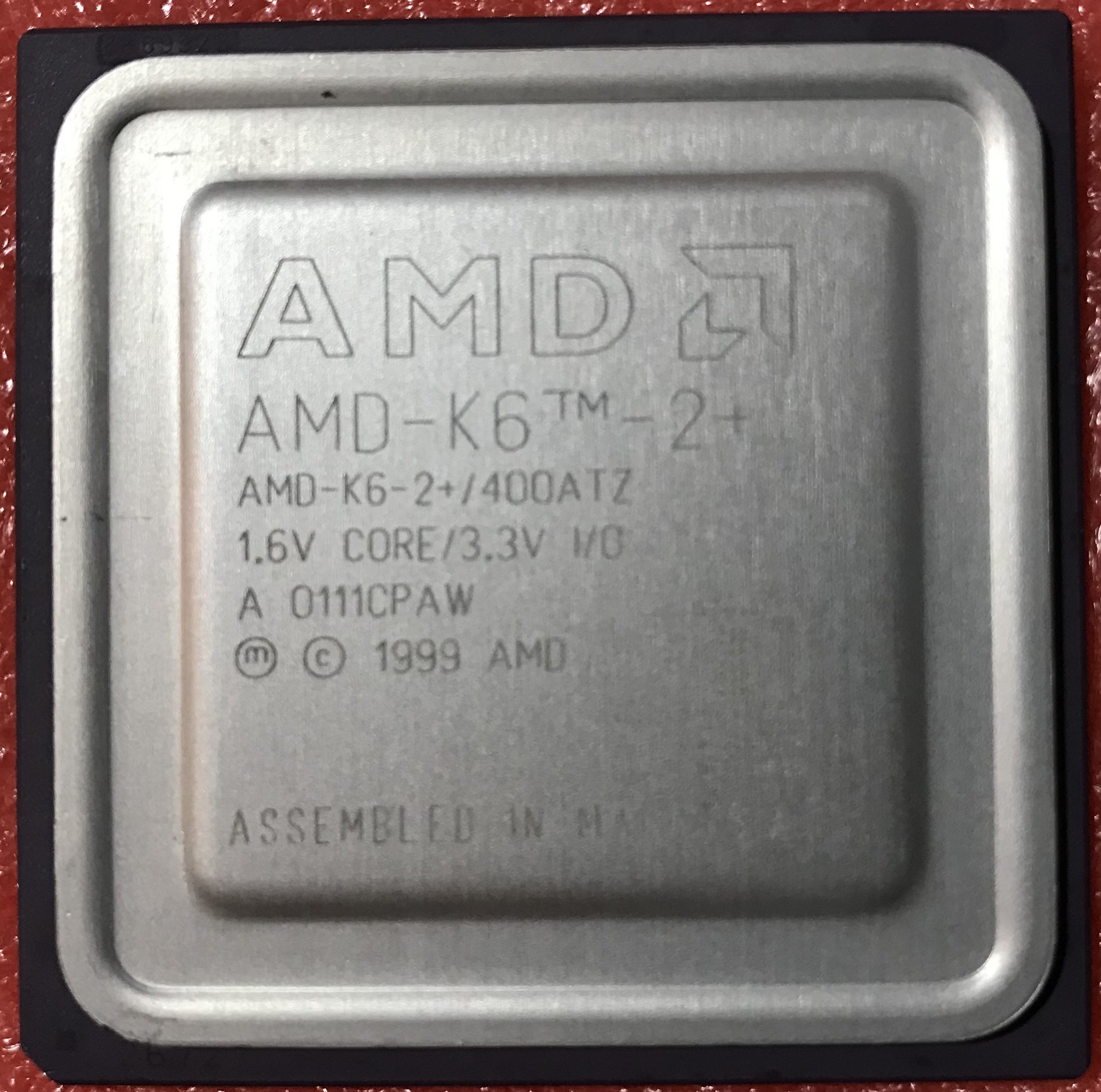 Arrivato oggi il mio secondo K6-2+, il primo è un 550 VCore 2.0V, questo è meno veloce, 400MHz VCore 1.6V, in linea di massima, è una CPU per portatili, quindi difficilmente si adatta ai normali PC domestici, pensandoci è anche la seconda CPU K6 per portatili che ho, l’altra è un K6-2 433MHz, per questo c’è un particolare FSB di circa 96MHz, qui comunque c’è la possibilità di mettere il FSB a 100 o 66, con multi 4X o 6X, volendo si può impostare frequenze leggermente superiori a 400, usando multi intermedi (tra 4.5 e 5.5), oppure con dissipatori particolarmente efficienti, si può tentare la scalata ?