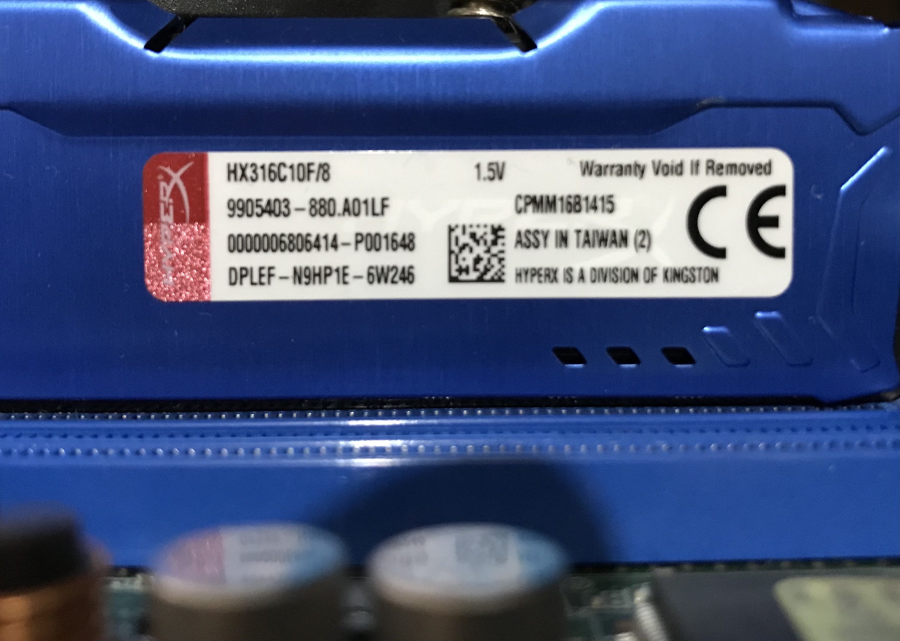Poco fa cercavo di capire che ram sia quella dell’ i5, ne aggiungo una foto, dall’ altra parte non ci sono altre scritte utili, parto da quello che so, DDR3 da 8GB, hyperX (Kingston), poi non saprei il CL e il PC1XXX, ecco bisogna capirlo da quelle scritte, che sono visibili in foto.
