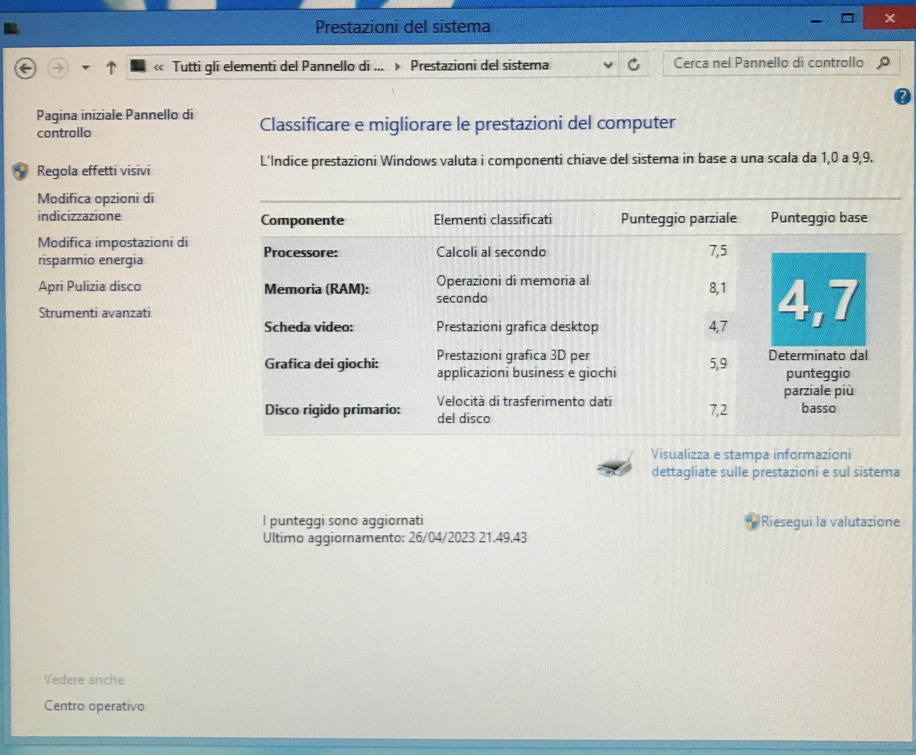 Gli altri valori sono visibili nella immagine allegata, il punteggio più basso guarda caso, è per la VGA integrata, in assoluto non pessima, ma andrà rimpiazzata con una migliore, ovviamente ? avrei già pronta la scheda, ma voglio capire se sia un po’ meglio, oppure se cercare ? qualcosa di meglio, questo potrà dirmelo qualche bench, il resto sembra abbastanza equilibrato, anche se il 7.2 del disco (SSD 240GB SanDisk) mi sembra un po’ basso.