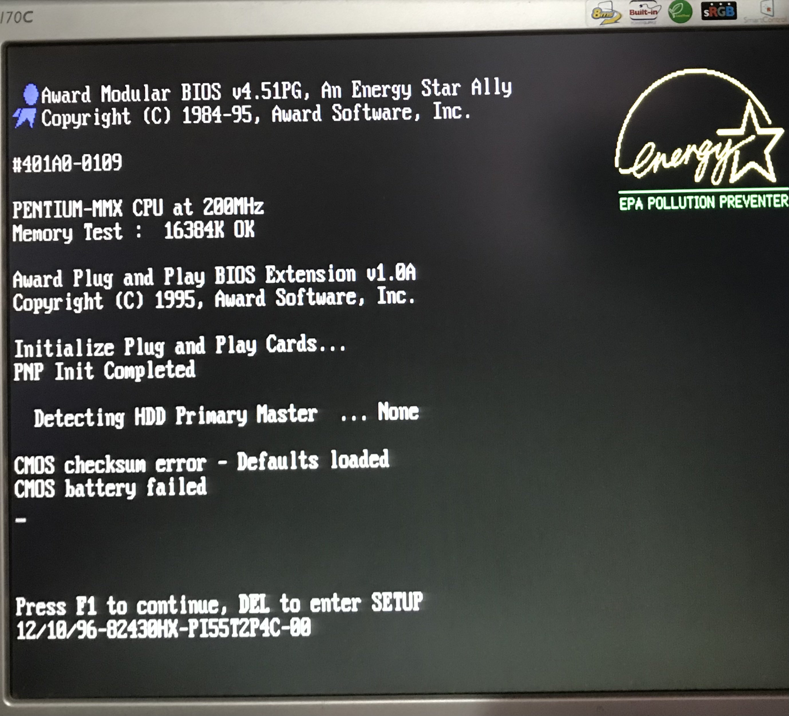 Dunque riguardo l’ASUS P/I-P55T2P4 REV. 3.10., oggi ho dedicato qualche minuto per prepararla all’avvio, per prima cosa ho recuperato una CPU compatibile (in verità va bene ? qualsiasi S.7, eccetto quelle con particolari voltaggi), dovendo scegliere tra le tante, ne ho usato una che utilizzavo in precedenza (quindi sicuramente ok ??), in pratica un Intel Pentium MMX 200 SL27J (l’ultima lettera non si legge bene), con doppio voltaggio per I/O e VCORE, i jumper sulla MB erano già impostati per questa CPU, per sicurezza li ho controllati ed erano giusti, passando alle memorie, ho quattro banchi identici da 8MB ciascuno, per il momento ne ho messi solo due, gli altri due li aggiungo in seguito, dopo aver fatto ✔️ alcuni test e qualche bench, infine la scheda video, ho inizialmente usato la solita ATi Rage XL PCI da 8MB, ma ho il dubbio che possa non funzionare, per il resto metto alimentatore ATX con adattatore AT, tastiera AT e la solita scheda Post card ISA-PCI.