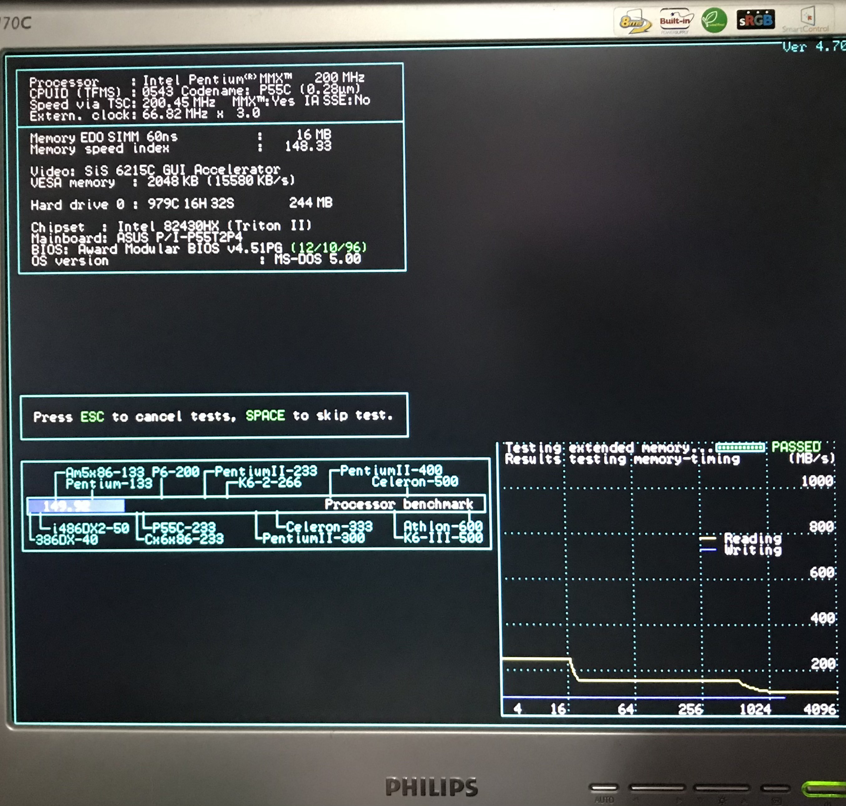 La scheda potrebbe tornare in perfetta ? salute ?, se si sistema il chip ODIN, dai diagnostici non è emerso alcun problema, eccetto quello del chip ODIN, ho eseguito qualche programma di bench, al momento non ho altri PC simili da avviare, per fare un confronto diretto (con i risultati ottenuti), se avessi più tempo ⏱ riavvierei uno dei VX con P.MMX, ma per adesso non è possibile, in ogni caso aggiungo un paio di immagini, una è quella della schermata ? del BIOS della SiS PCI, l’altra invece dello Speedsys 4.70, in cui si possono vedere i risultati con il P200MMX.