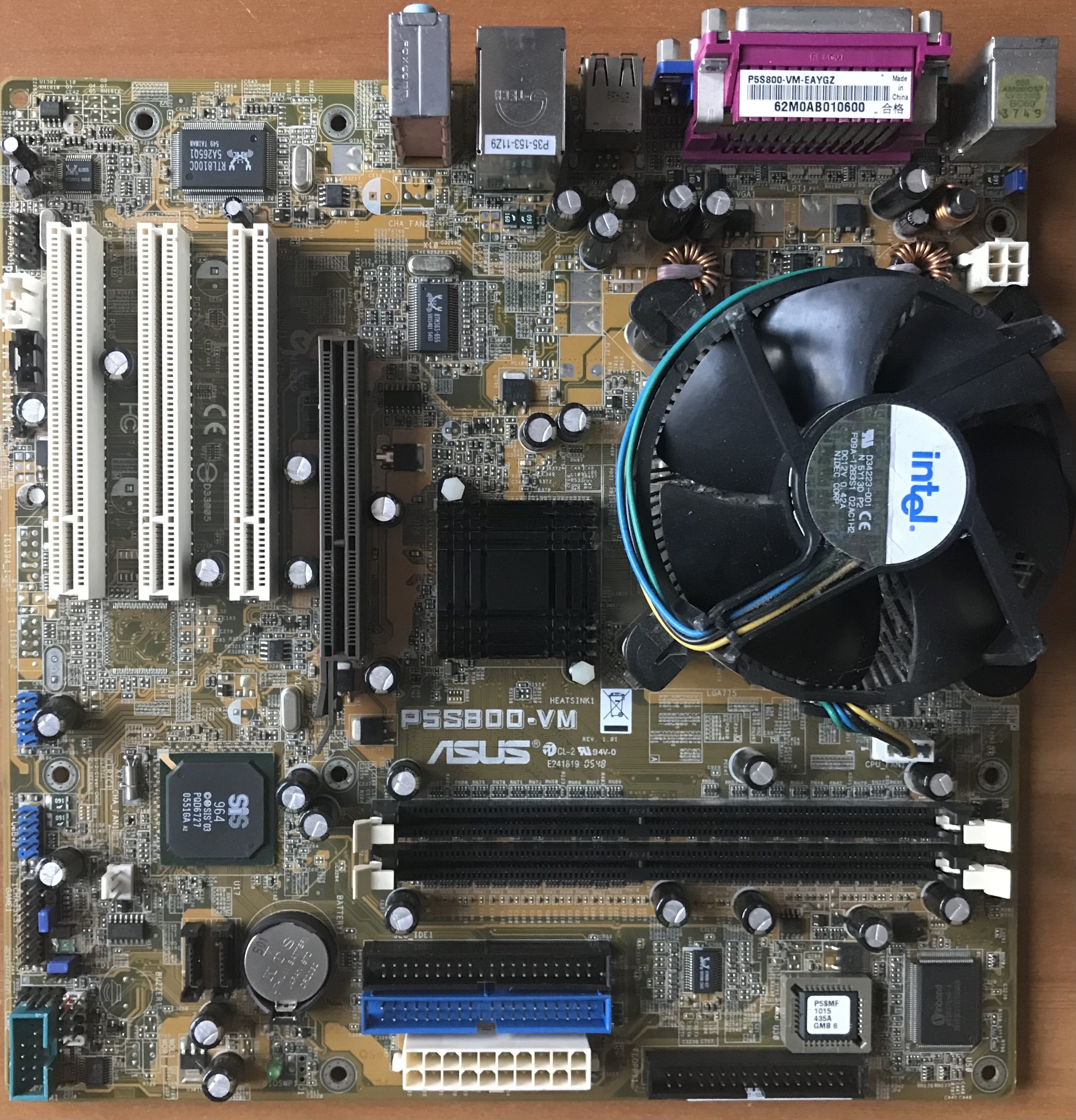 Ho appena ? terminato il lavoro su due delle schede madri, la prima era l’ASUS P5S800-VM, in questa c’era solo un condensatore da sostituire, rimosso e misurato, ha mostrato una capacità un po’ bassa, mi aspettavo un ESR leggermente alto, ma invece era direi normale. Quindi, la scheda è solo da provare, aggiungendo solo la RAM, il video è integrato, come l’audio, e per iniziare a vedere se va, basta ? questo, poi se funziona bisogna aggiungere il resto, e iniziare i bench.