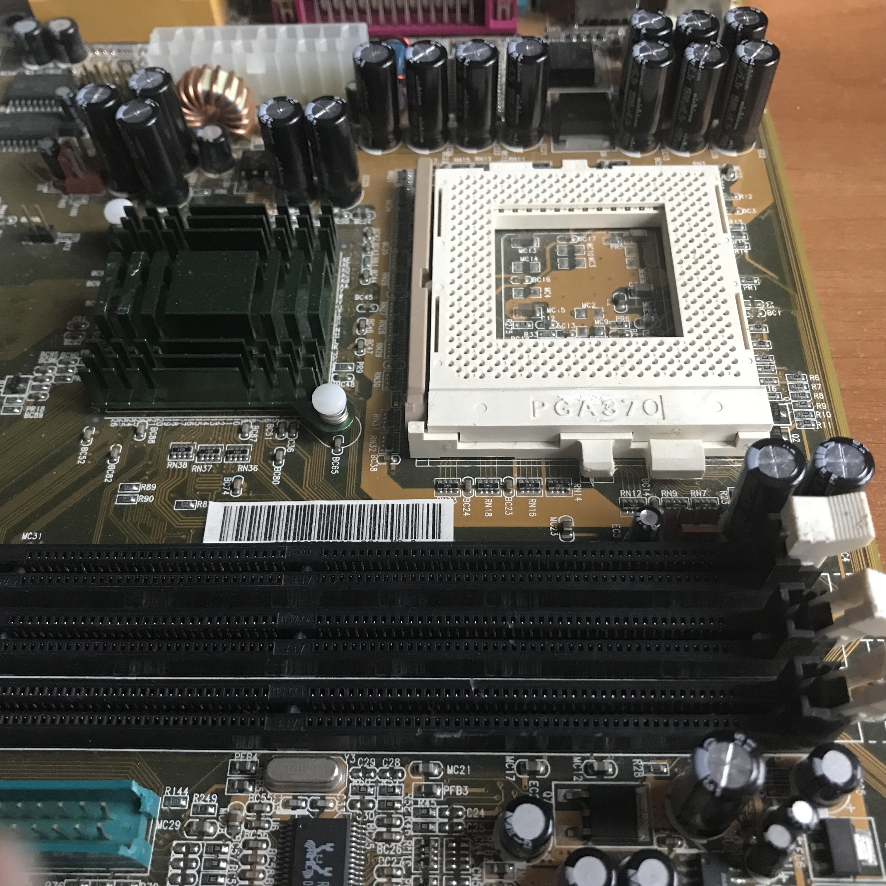 Giusto per finire, i lavori di saldatura sulle schede madri, ho una ABIT SE6 pronta per la sostituzione dei condensatori elettrolitici, li avevo rimossi tempo ⏱ fa, sia quelli rigonfi che quelli visibilmente a posto ?, ovvio ? che ho rimosso solo quelli di quel tipo, lasciando gli altri originali, e sperando che siano ancora ⚓️ in buono stato.