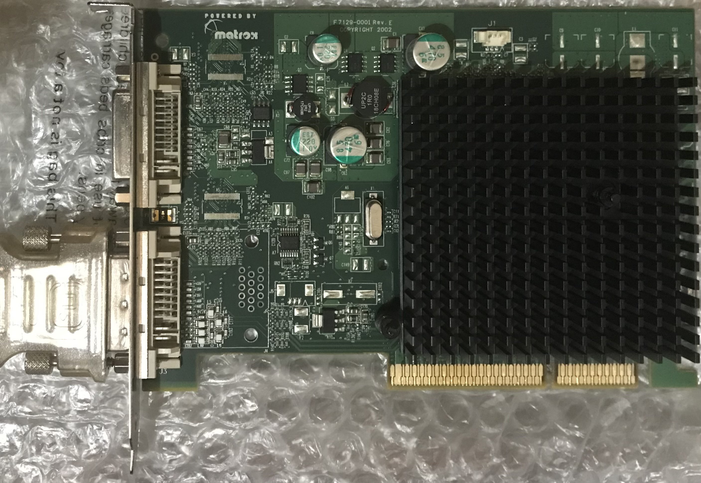 Aggiungo la foto della VGA AGP Matrox, MGI P65…, se non ricordo male ha 64 MB di RAM, pochi per essere una scheda del genere, ma non so se magari ? esiste anche con 128 MB, non credo che in ogni caso sia brillante