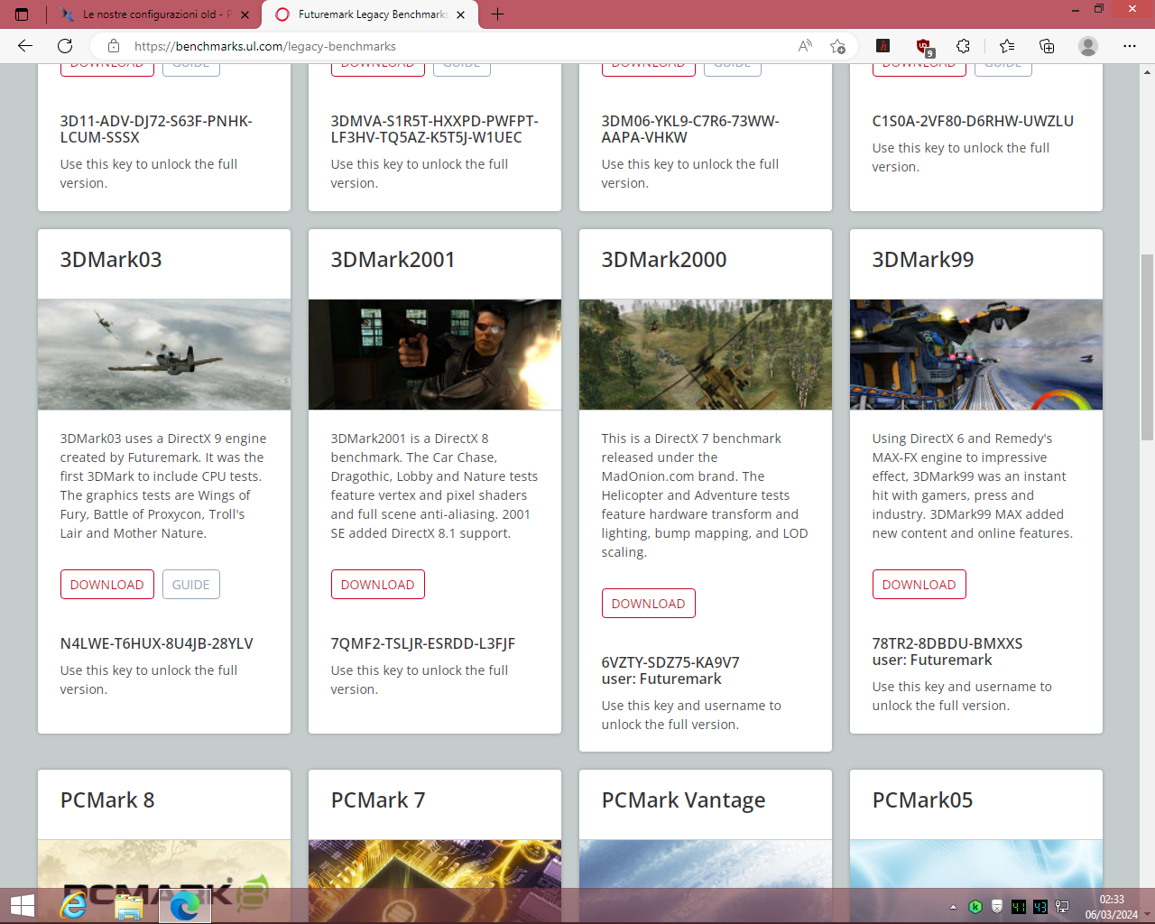 ️ trovato il 3D Mark 99, inoltre ho da provare il 3D Mark 7, devo installarlo e vedere i punteggi.