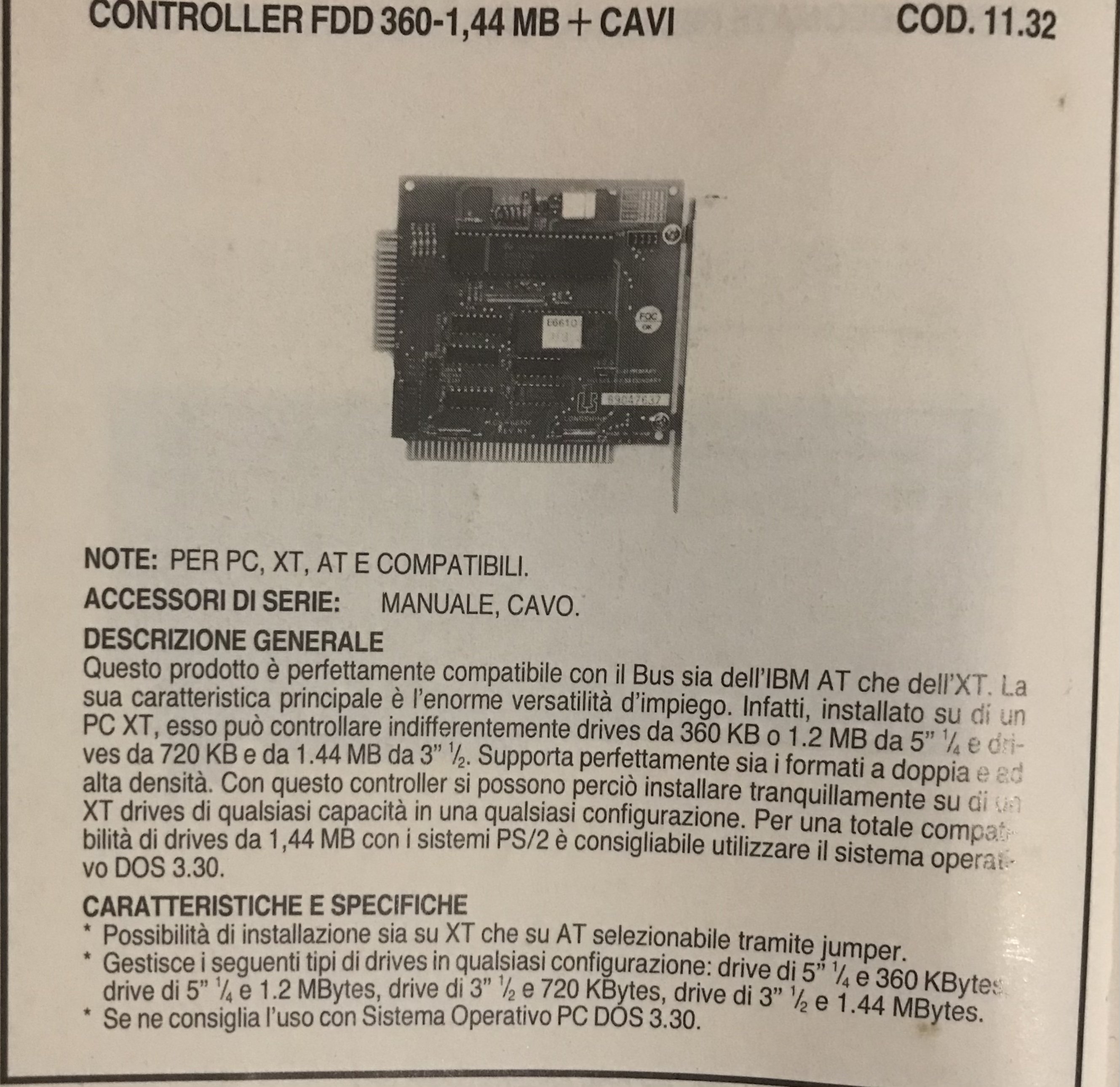 Un’altra scheda che non ho, ma che sarebbe necessaria, è quella del controller floppy, addirittura questa sembra capace di leggere e scrivere quelli da 1.44MB, a memoria ricordo che sul XT che usavo nel 1990, leggeva al massimo 1.2MB, cioè anche se volevi formattare a 1.44MB, non era possibile, ma forse ? potrebbe essere un problema di BIOS, in ogni caso per i vecchi DOS, il problema non c’è, dato che ho i floppy ? 3.5” da 720KB.