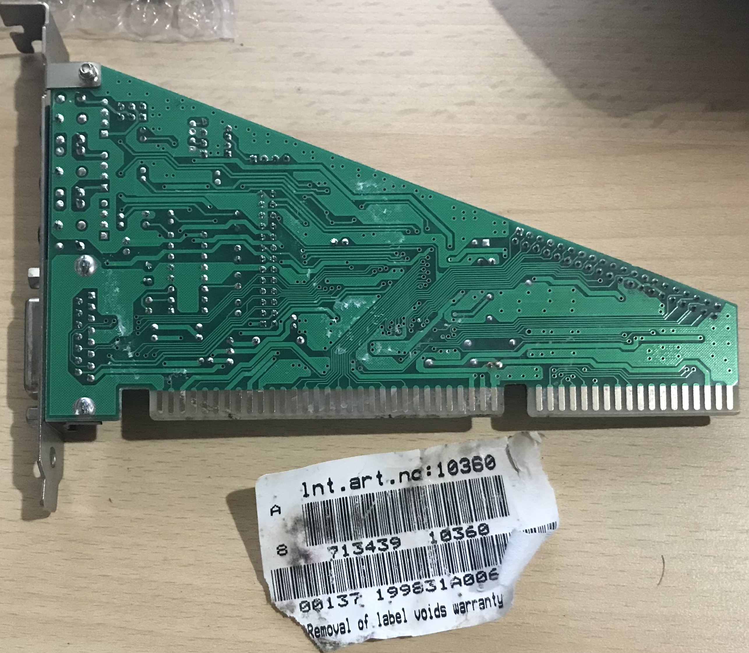Riordinando alcune schede, che avevo tra le zampe ?, e dovevo mettere via, ci sono una VGA ISA della Cirrus Logic, e due schede audio ISA, una SB e l’altra una compatibile (?), quest’ultima di forma triangolare, ho ravvivato i contatti, pulendoli al meglio, il risultato è ottimo ? tranne per due pin della SB che presentano dell’ossido, li ho carteggiati leggermente, il risultato dovrebbe aver migliorato la superficie di contatto.