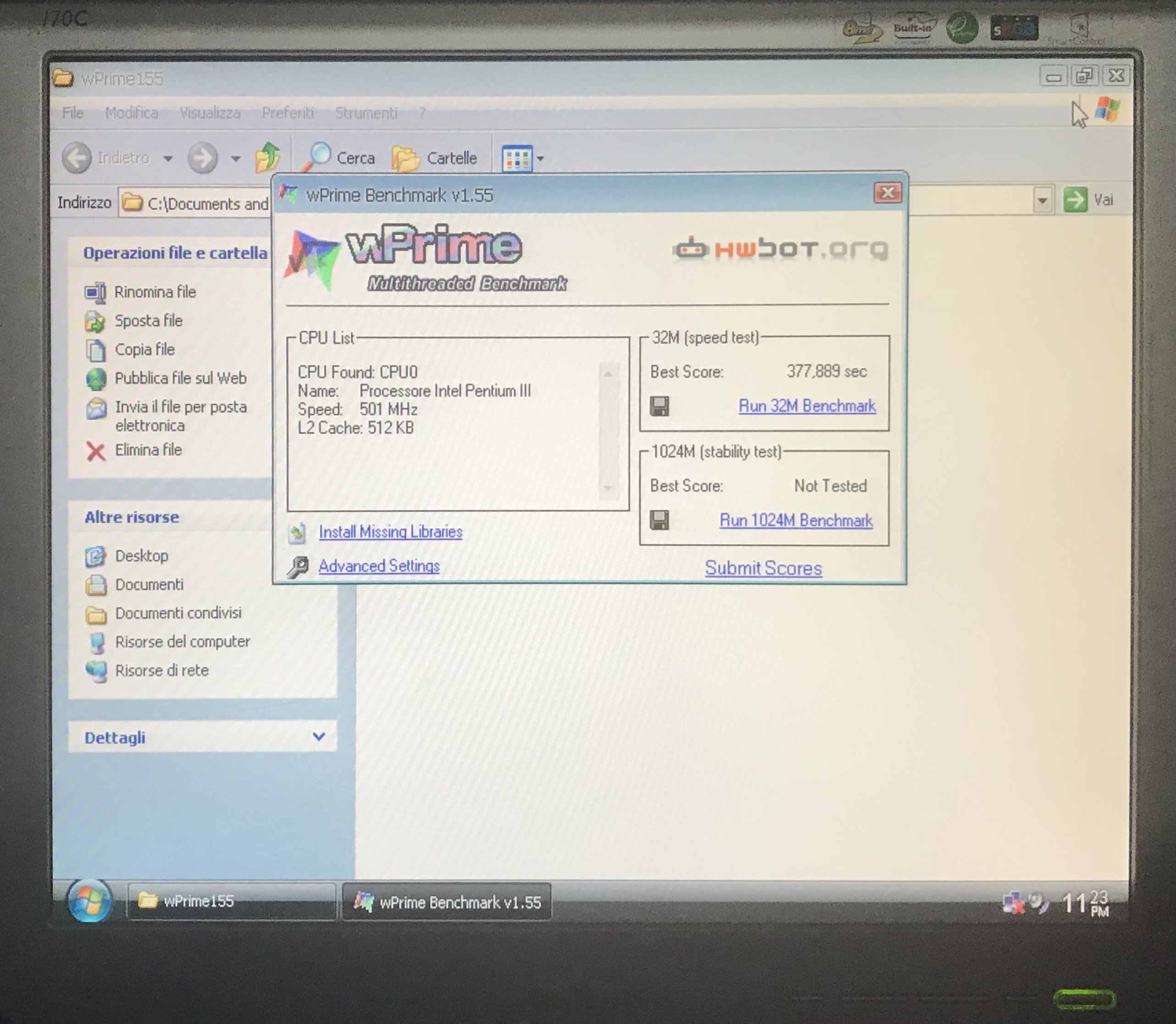 Ci sono driver da caricare per l'SB 128 PCI, e per il resto è abbastanza buono, ho fatto un po' di bench con i programmi Windows, i risultati sono probabilmente abbastanza in linea con i PC di questo tipo, ho messo qui i bench di CPU-Z e SuperPI.