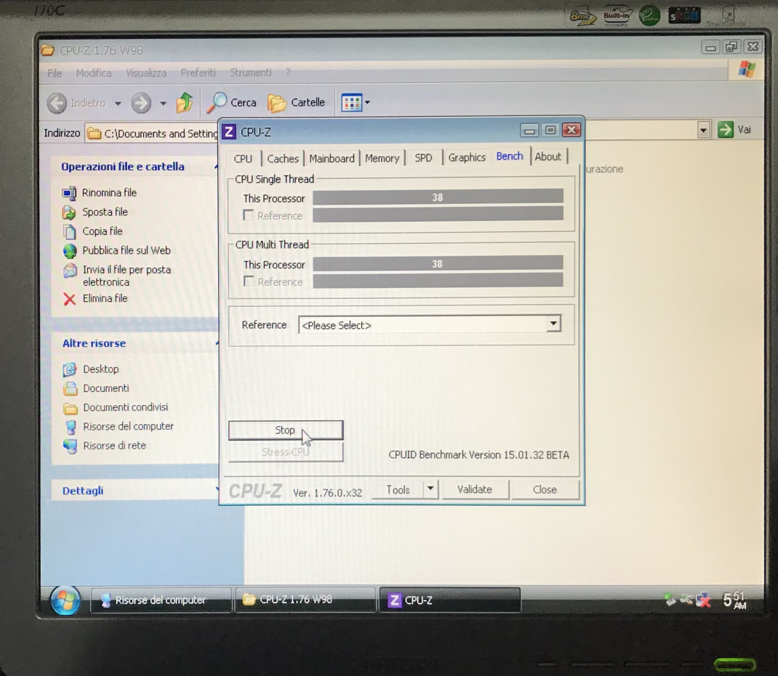 Ci sono driver da caricare per l'SB 128 PCI, e per il resto è abbastanza buono, ho fatto un po' di bench con i programmi Windows, i risultati sono probabilmente abbastanza in linea con i PC di questo tipo, ho messo qui i bench di CPU-Z e SuperPI.