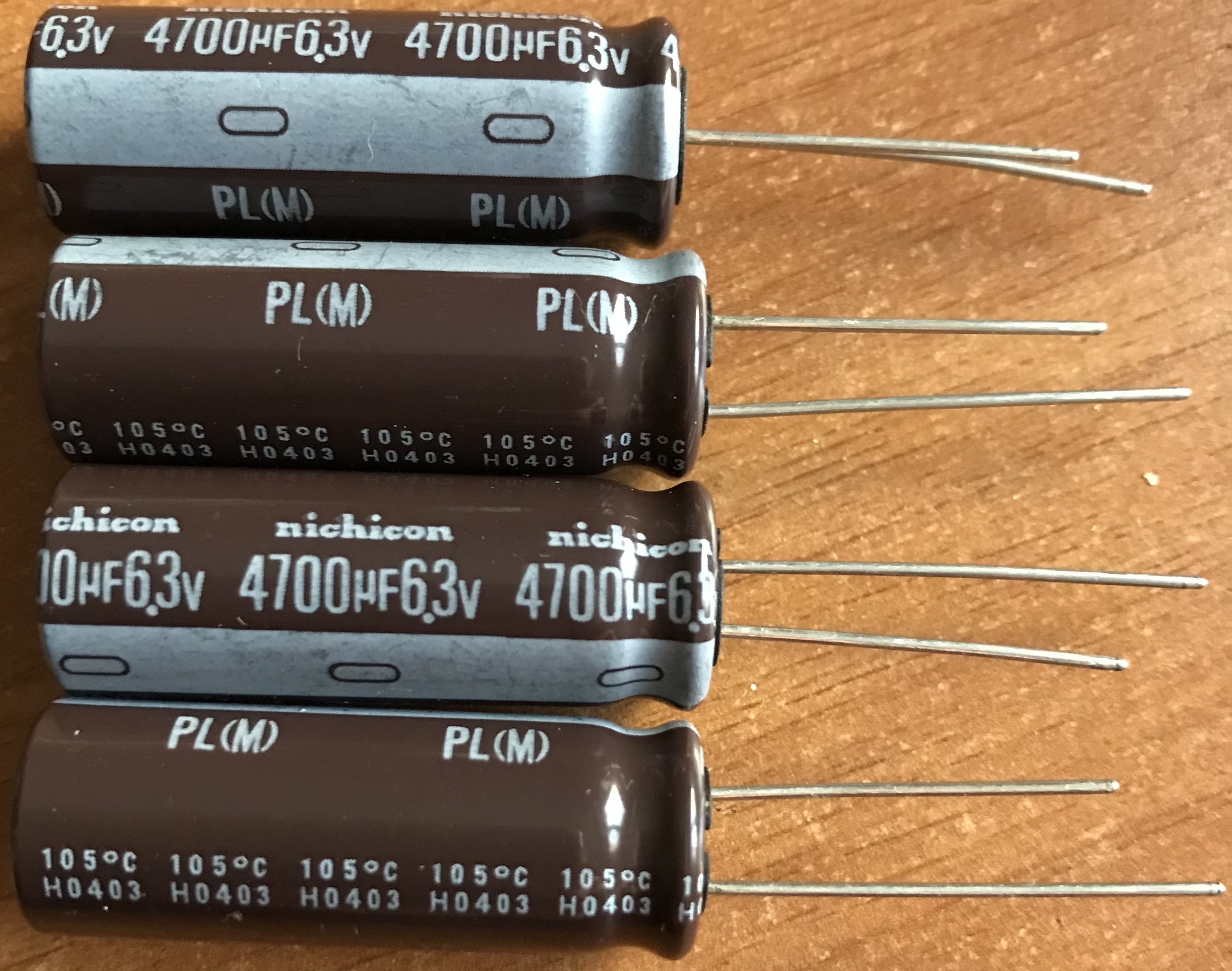 I cinque condensatori li ho rimossi abbastanza facilmente, in realtà in seguito ho dovuto togliere un sesto condensatore elettrolitico, un Rubycon MBZ da 1500uF 6.3V, perché mi intralciava e non potevo liberare i fori di quello in mezzo, quelli rimossi sono tutti dei Nichicon HM 3300uF 6.3V, probabilmente appartengono a serie prodotte inizialmente, che nel tempo causavano problemi di rigonfiamento, in seguito venne a detta di qualcuno corretto il problema, ma non saprei ? se fu risolto definitivamente, comunque li sostituisco con dei Panasonic, quindi nessun problema ? spero ?.