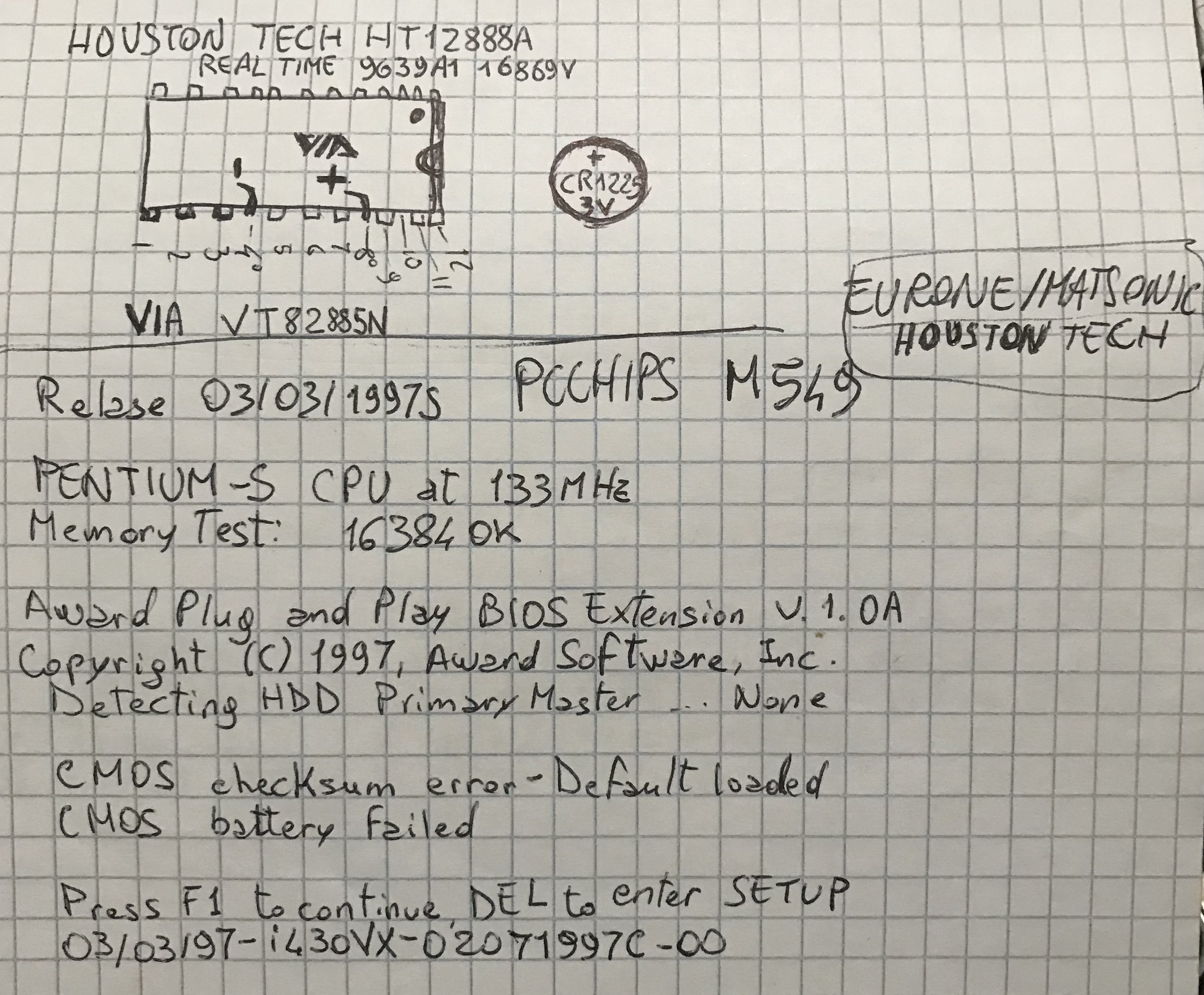 Prima di riprogrammare il chip BIOS della Chaintech 5TDM2, ho fatto qualche prova, per vedere se trovavo il modo di avviarlo, malgrado alcuni tentativi, resta fermo