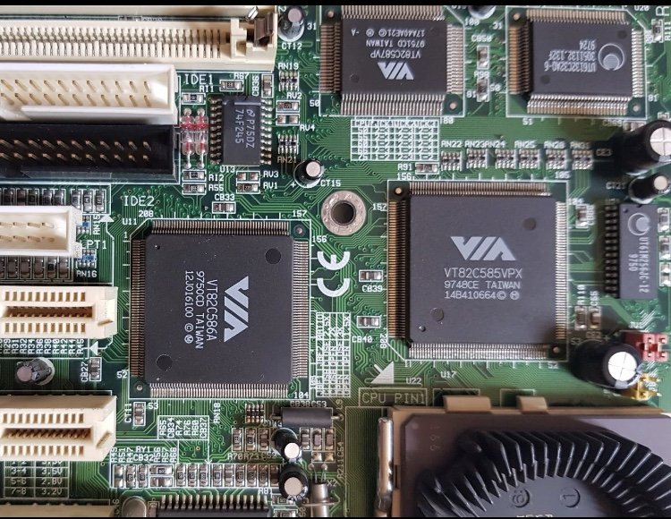 Essendo questa motherboard sicuramente non antecedente al 1997 (il chipset VIA Apollo VPX è stato infatti presentato all'nizio di quell'anno), mi sarei aspettato però di trovarci già i "nuovi" VRM di tipo switching, considerando anche che qui è possibile impostare il bus a 75 Mhz e quindi ottenere frequenze della CPU più elevate, con conseguente maggiore produzione di calore