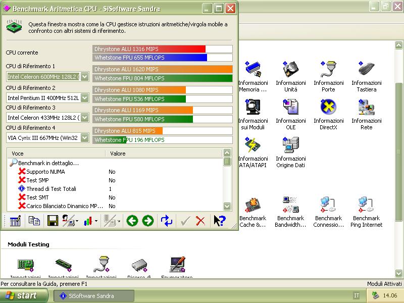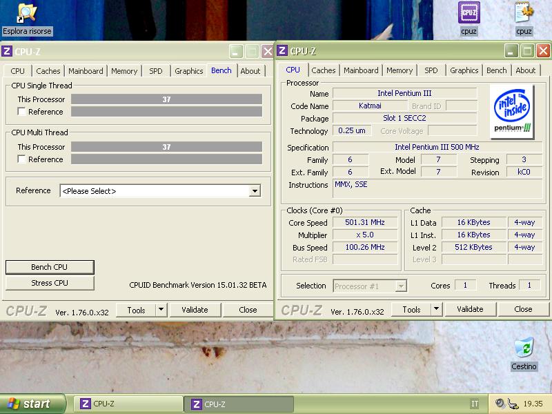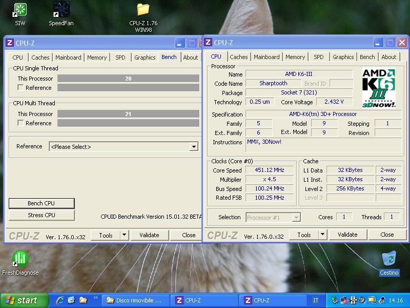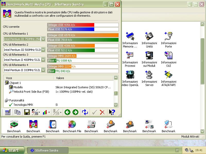 - Benchmark CPU-Z v1.76 (versione per Windows 98) in modalità provvisoria: