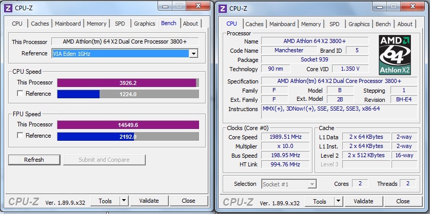Poco fa ho scaricato il file di CPU-Z W95, ho avviato il bench direttamente sul PC Internet in firma, il risultato è stato questo: