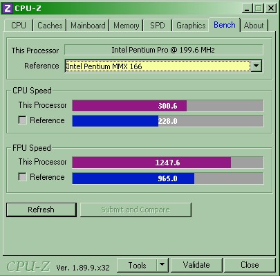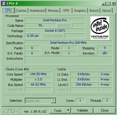 Aggiorno i bench del Pentium Pro, ho eseguito CPU-Z xW95, queste le immagini:
