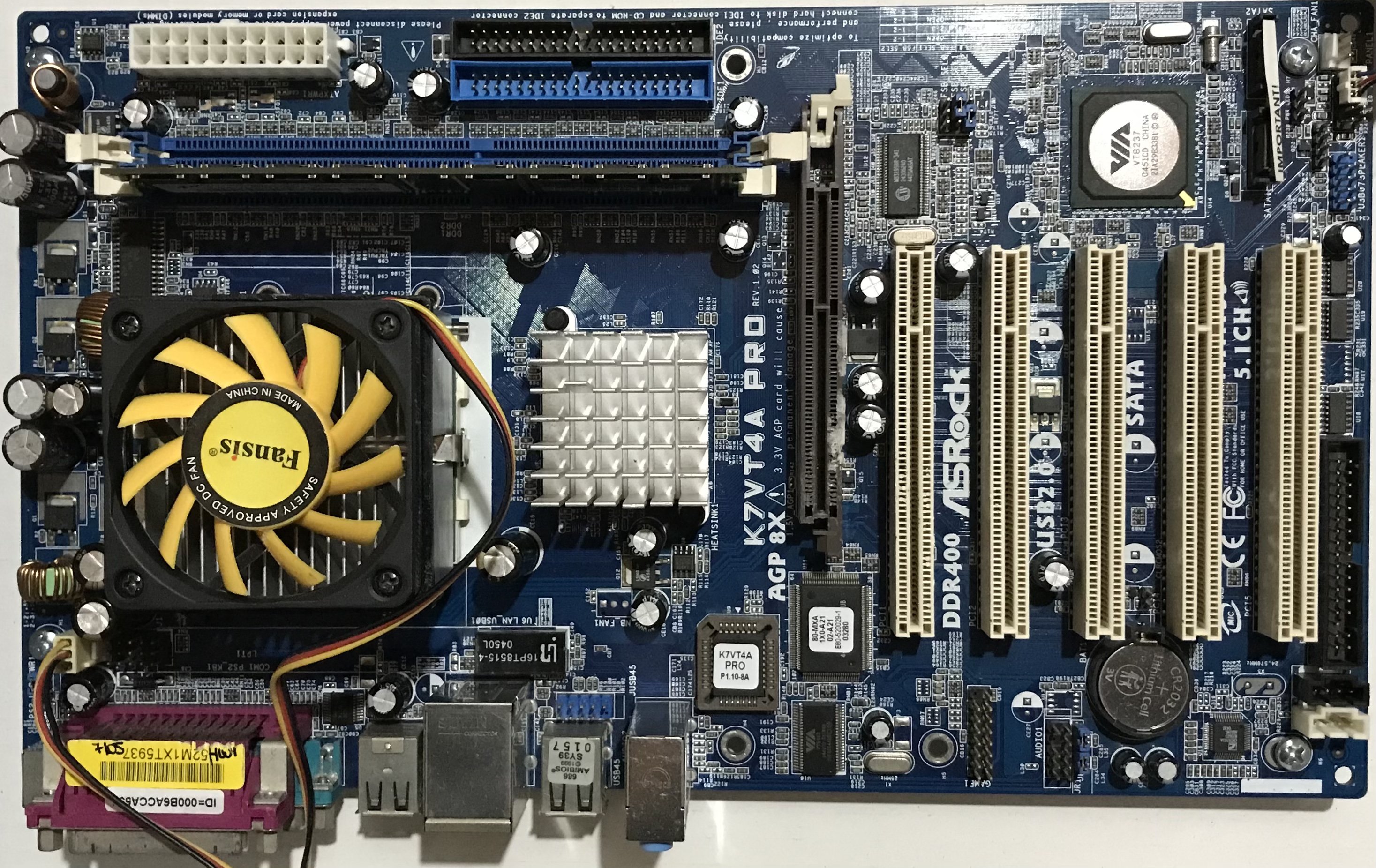Ho un altro 462, la sigla sul BIOS è 8VTAA, non ricordo il produttore, ma so che è possibile trasformarla in una SOYO, aggiornando il BIOS, la CPU installata dovrebbe essere un Athlon XP forse ? 1600 o 1800+, almeno mi sembra, qui c’è una GF4MX440 da 128MB, penso di scambiarla e metterla in un altro PC, questa MB ha Ram PC133, quindi non è il massimo delle prestazioni.
