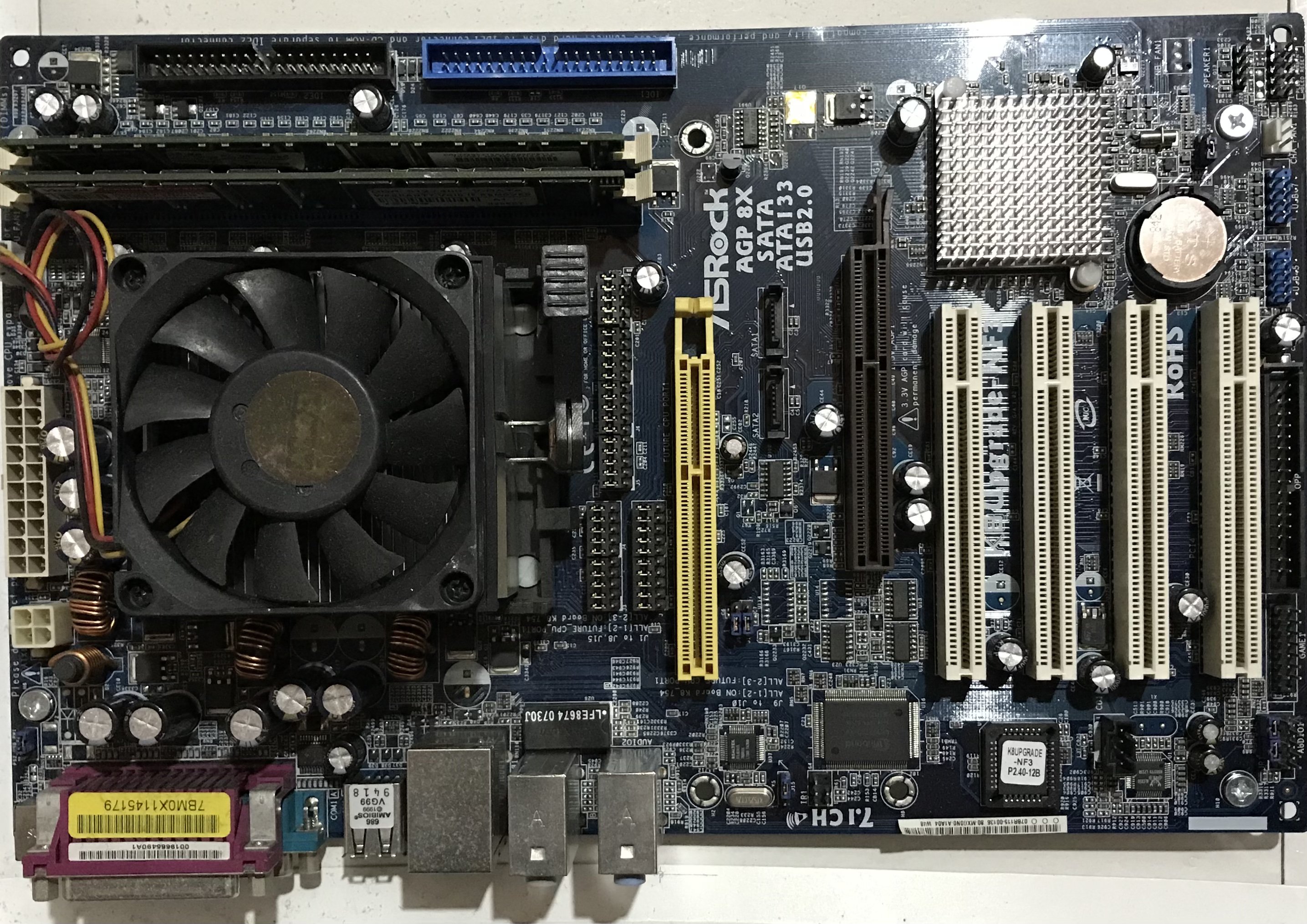 Infine una ASROCK K8Upgrade-NF3, con Sempron mi sembra 3400?, ci sono due RAM da 512MB, in totale 1GB quindi, ma nessuna VGA AGP, qui si deve capire se può andare bene ? una ATi 9XX0, cercherò di trovare quella più adatta.