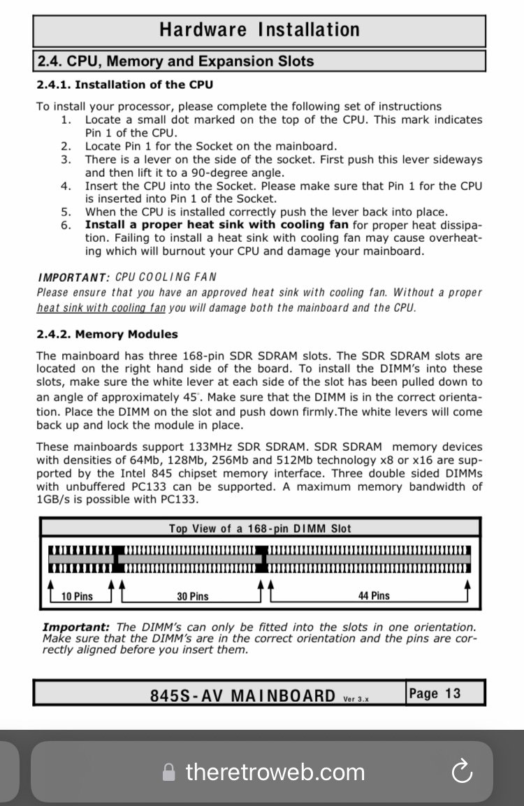 Non ho mai avuto un modulo da 1GB non ECC, ma la prima MB per P4, una AZZA 845S-AV (mi pare sia quello il modello), ha tre banchi PC133, il massimo di RAM installabile è di 3GB!, dovrei guardare che tipo di RAM accetti, potrebbero effettivamente essere ECC, ma non registered, come potrebbero essere non ECC, tempo fa c’erano in vendita, li avrei comprati, ma il prezzo era abbastanza alto, alla fine ho rinunciato, non ho comprato neanche un modulo, comunque a titolo di curiosità, cerco un link se esiste ancora