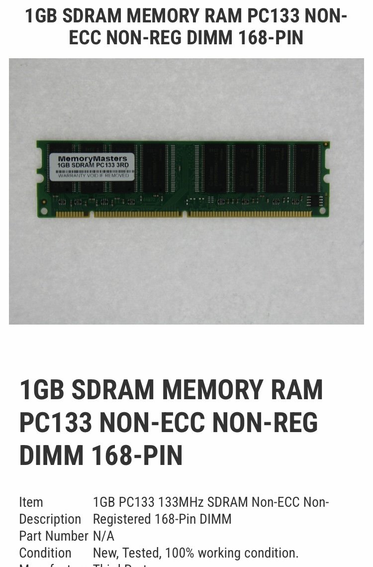 Anch'io non sapevo che esistessero moduli SDRAM PC133 (quindi a 168-pin) non ECC da 1 Gb.