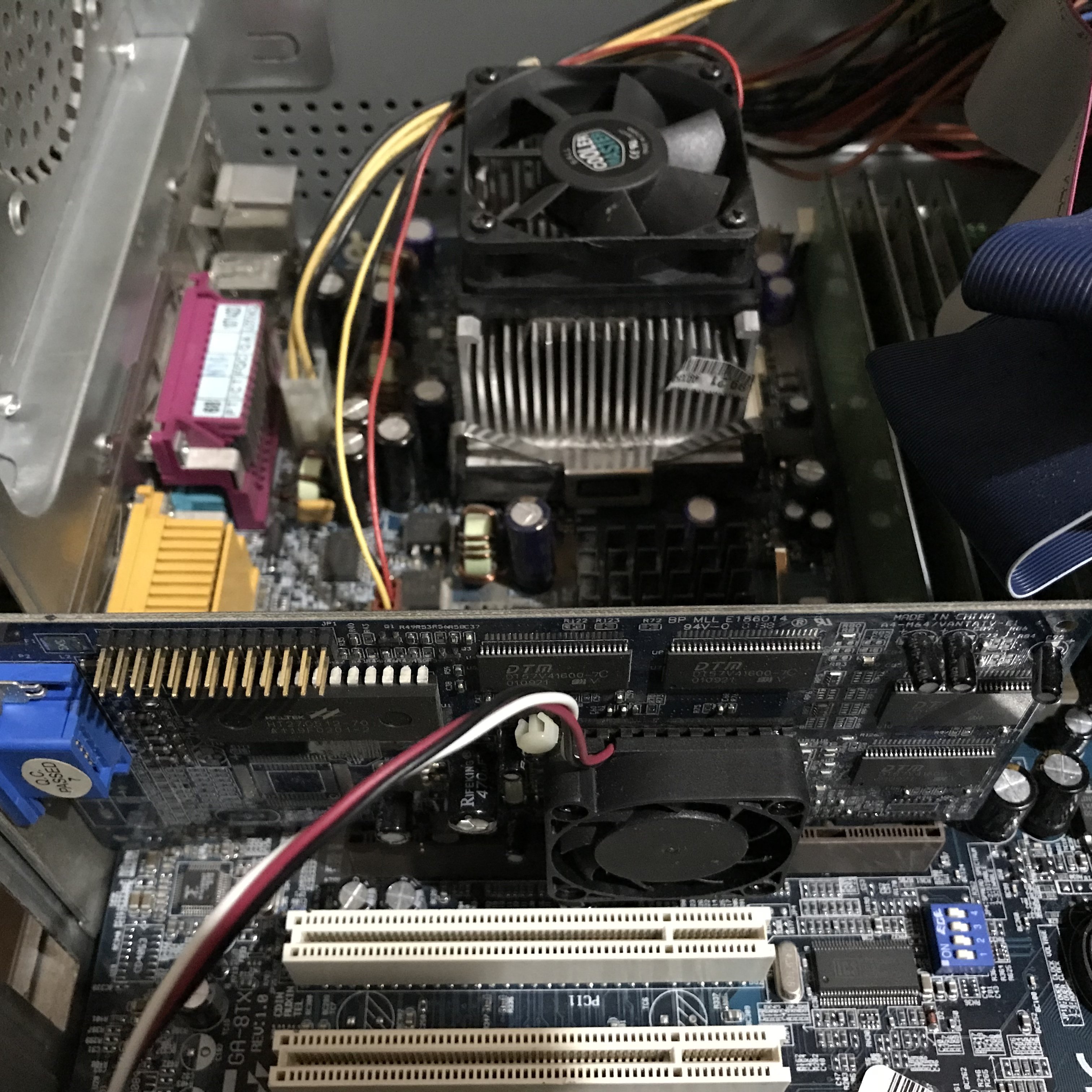 La scheda video, non so cosa ? sia, non c’è scritto molto, su una etichetta ? è scritto “AM64E1-32MB”, insomma è sicuramente un modello super economico, e immagino anche abbastanza limitato in velocità o nel 3D.