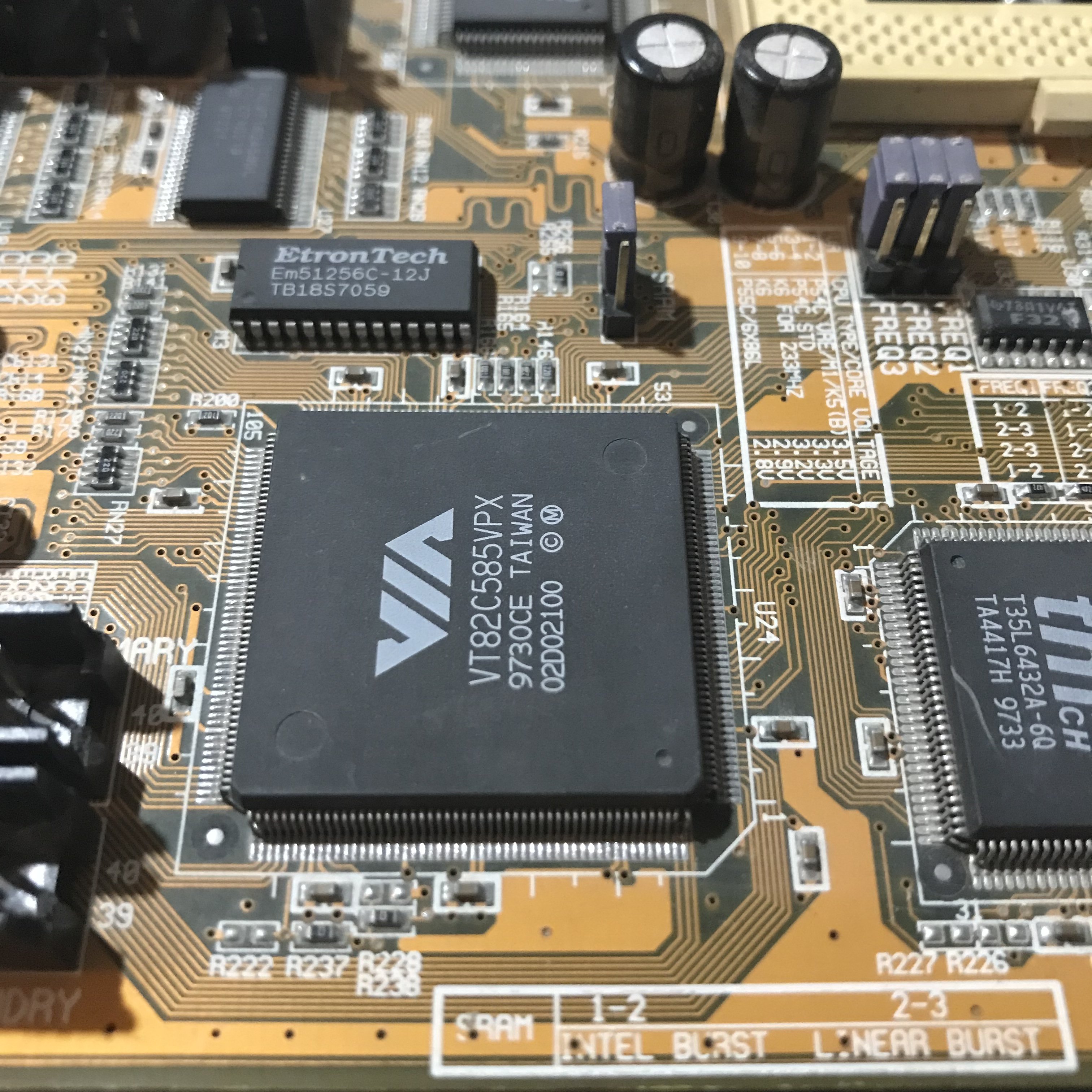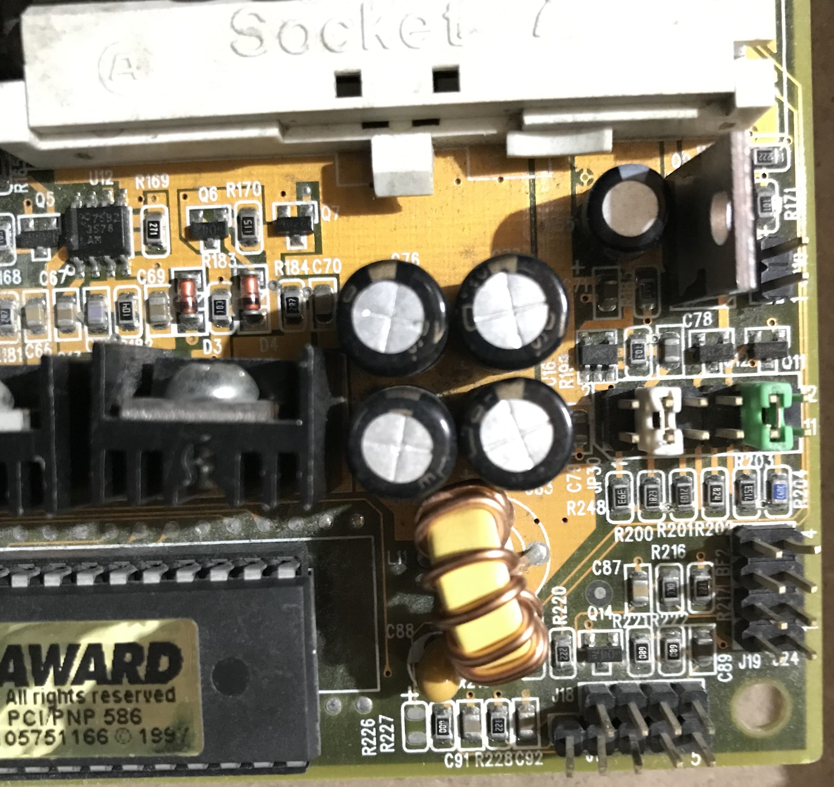 Ecco onestamente davo per scontato, che i regolatori fossero di tipo switching, in realtà potrebbero essere quasi sicuramente lineari, questo spiegherebbe i dissipatori di dimensioni generose, da un lato limita parecchio l’upgrade di CPU, di solito meglio non superare i 200 MHz, se sono lineari dovrei scordarmi i K6-2 o superiori (CXT inclusi), ma ho alternative abbastanza interessanti ?, come il K5 166 (116 MHz), oppure vari Cyrix 6X86, normali L o MX, non ho incluso l’ MII perché ha frequenza superiore a 200 MHz, e in breve tempo