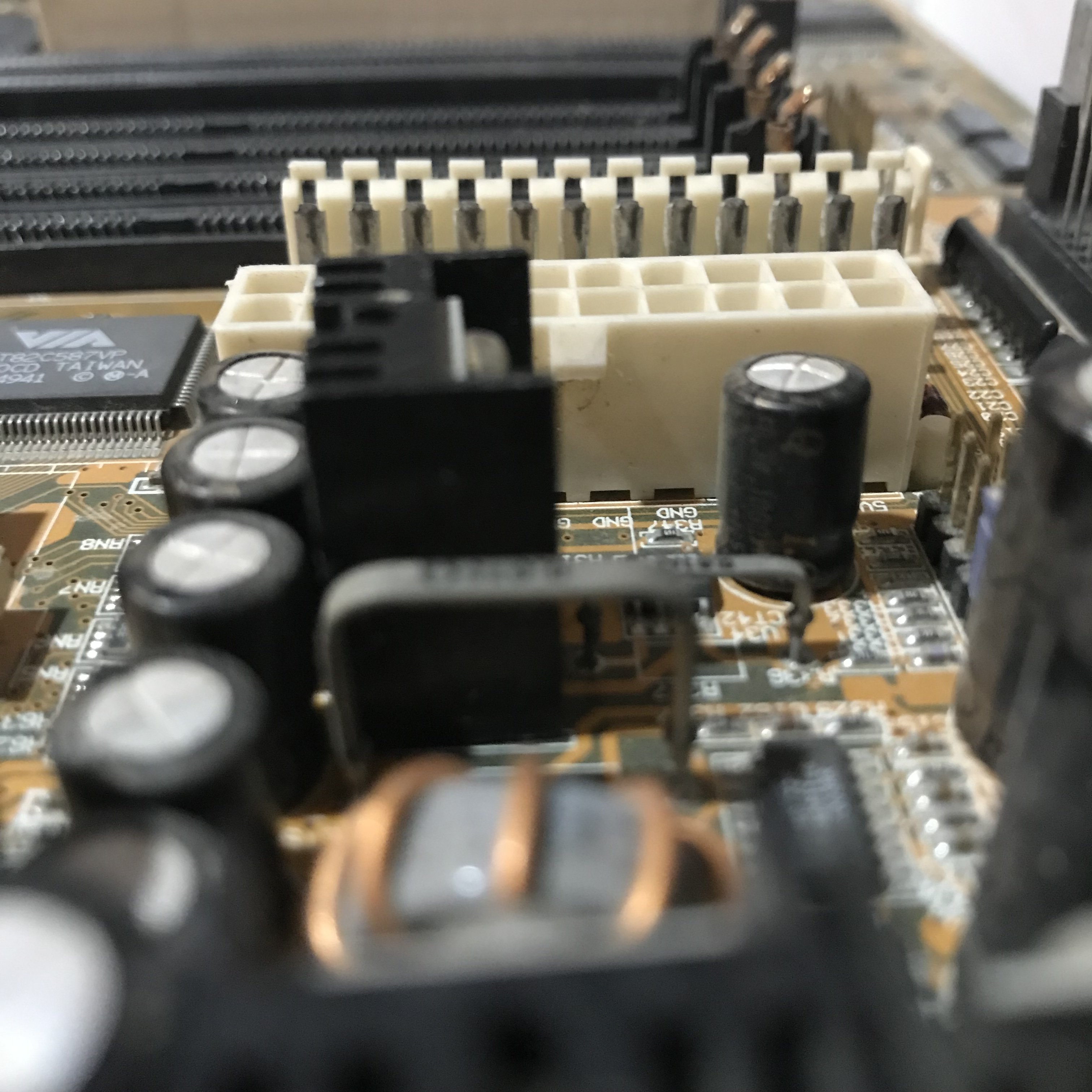 ️ pronta, perché bisogna riparare le piste interrotte, ebbene pensavo ci fossero quelle lato superiore PCB, in realtà osservando bene ? il retro, ne ho trovate altre, in definitiva la scheda madre è stata in mani “poco esperte”, si vede dai ganci ? rotti ?, dai pin piegati, insomma tutte cose che un utente, con un minimo di attenzione