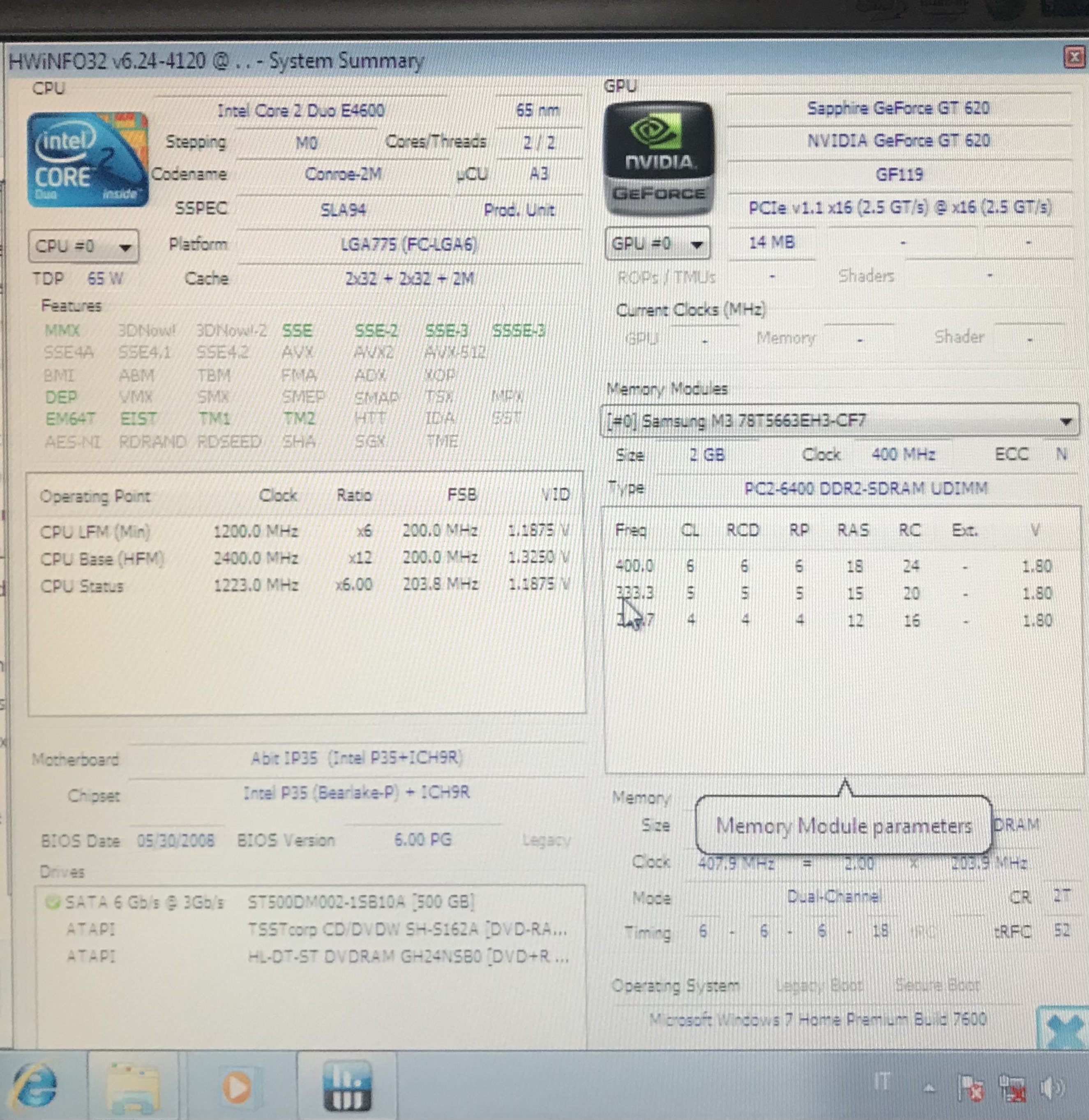 Ho rovistato tra i dischi SATA, che ho da parte, inizialmente avevo messo un WD Green da 500 GB ?? / 32 MB Cache, purtroppo ? deve avere qualche problema, fa strani rumori, e sembra lento, così lo sostituisco con un Seagate da 500 GB ?? 7200 giri, e in questo riesco a caricare Windows 7, purtroppo ? X86, ho quella 64 bit, che sarebbe l’ideale, ma adesso mi interessa vedere come va, in seguito posso andare su un Windows 7 o successivo 64 bit.