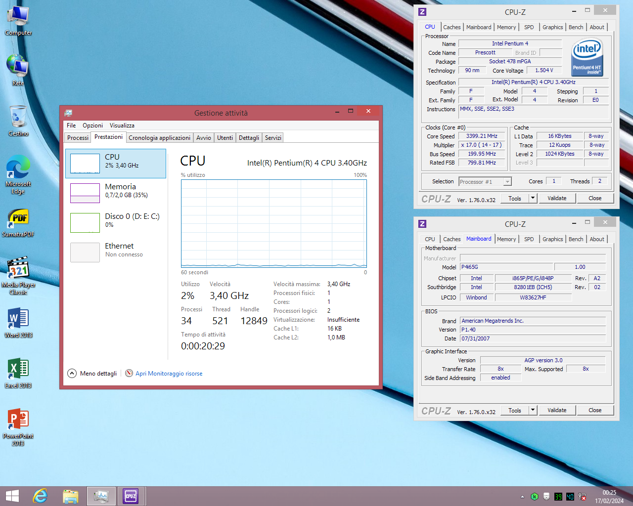" width="18" /> a frequenze standard (grosso modo come la Asus P4P800 Deluxe in firma) infatti riesce a far girare discretamente anche Windows 8.1, cioè un sistema operativo relativamente moderno, come si può vedere dai filmati che ho pubblicato.