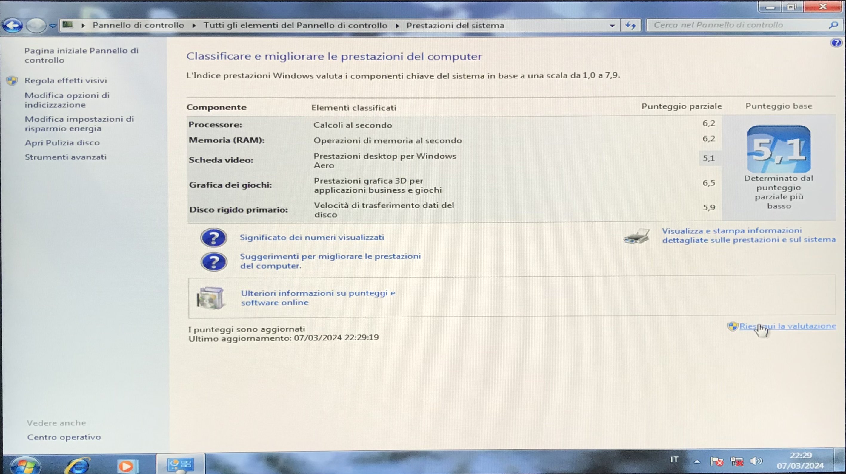 " width="18" /> e nel benchmark integrato di Windows 7 il punteggio è sempre lo stesso di quello trovato qualche anno fa:
