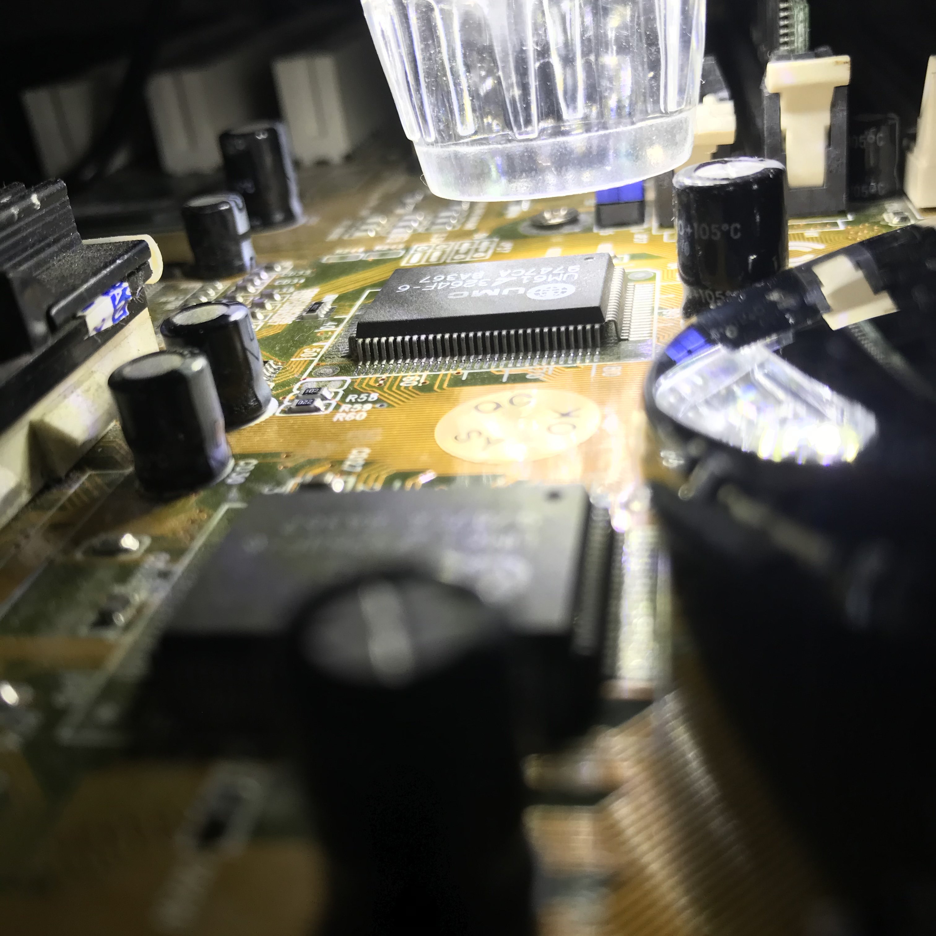 Dunque a proposito del microscopio ? e della Soyo 5BT5, la situazione attuale è questa, uno dei chip cache ha un pin mancante, non ho idea ? perché non ci sia, forse ? si era staccato e nel tentativo di risaldarlo si potrebbe essere rotto ????!!!???