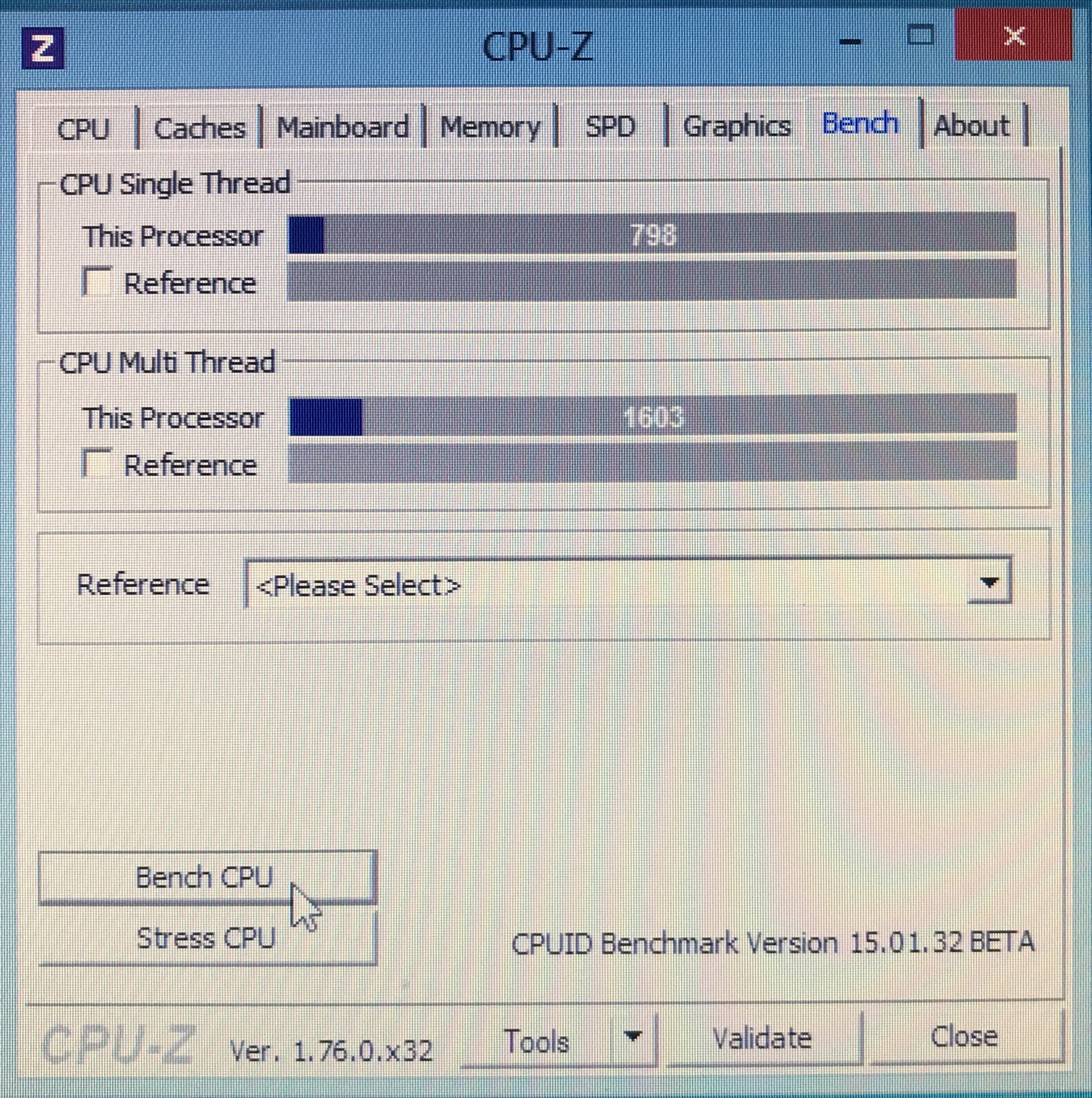 Appena finito il bench con l’ Acer i5, ho usato il vecchio ? CPU-Z 1.76 W98, non so quanto si possano considerare validi i risultati, sinceramente mi aspettavo molto meglio, probabilmente non è importante il quantitativo di RAM, ma fa un po’ di differenza la frequenza della CPU, in questo caso 3.1 GHz, comunque tra i due PC, ad occhio ? mi sembra che quello con i3 vada benissimo, ma probabilmente la differenza sarebbe più evidente, usando qualche programma di conversione video.