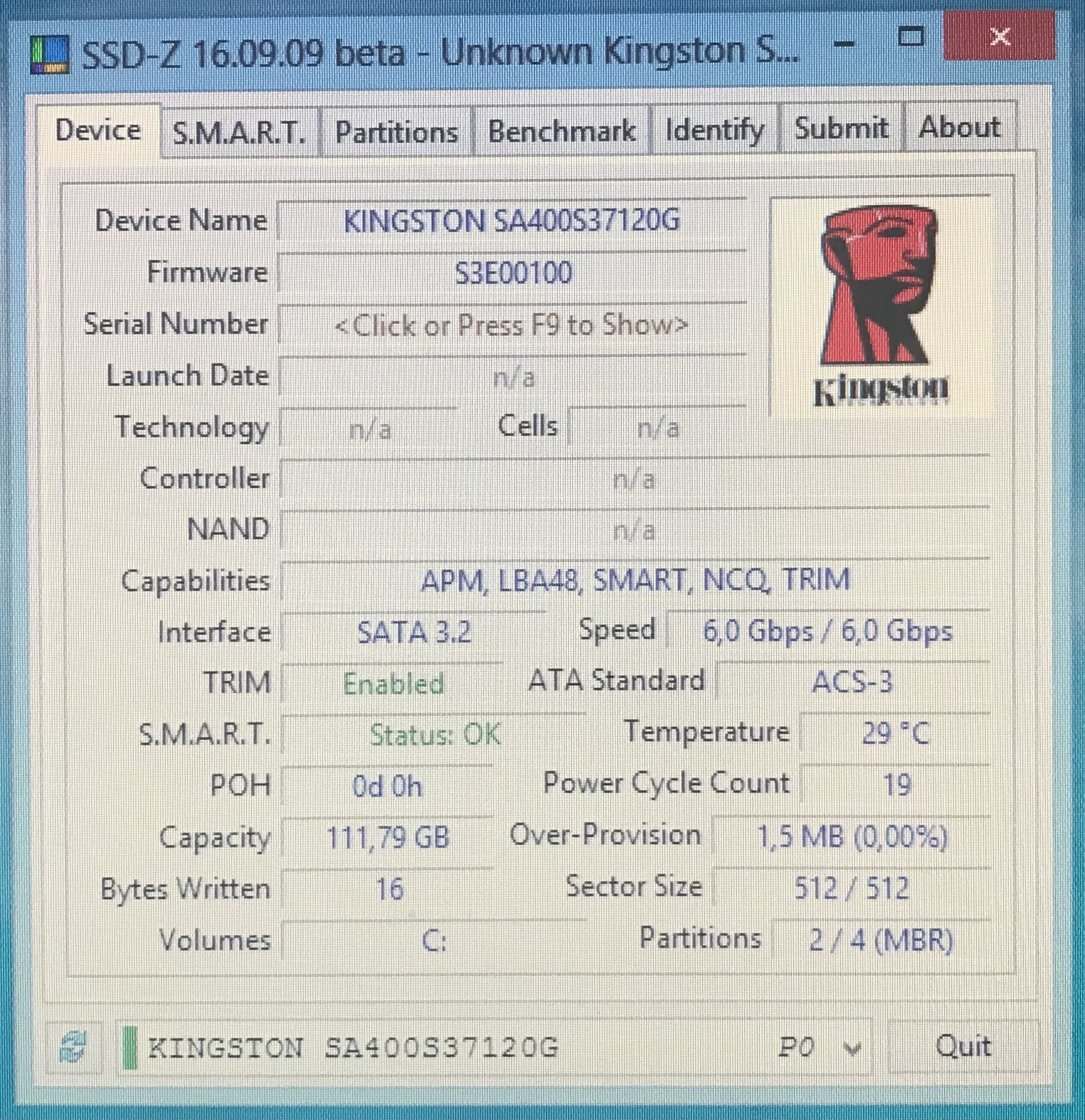 Eseguiti altri bench - diagnostici, uno è GPU-Z, e l’altro è SSD-Z, come si può immaginare ? è un programma per HD SSD, tipo CPU-Z.