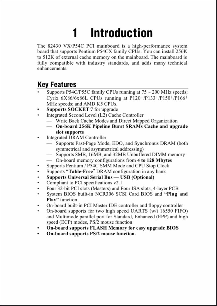 La scheda madre è in formato ATX, ha una VGA integrata (RAM espandibile), il chipset è HX, e quindi le memorie installabili sono solo a 72 PIN, guardando la MB, non vedo ? alcun chip cache L2, questo significa che bisogna aggiungere un modulo COAST per averla disponibile, e guadagnare in velocità.