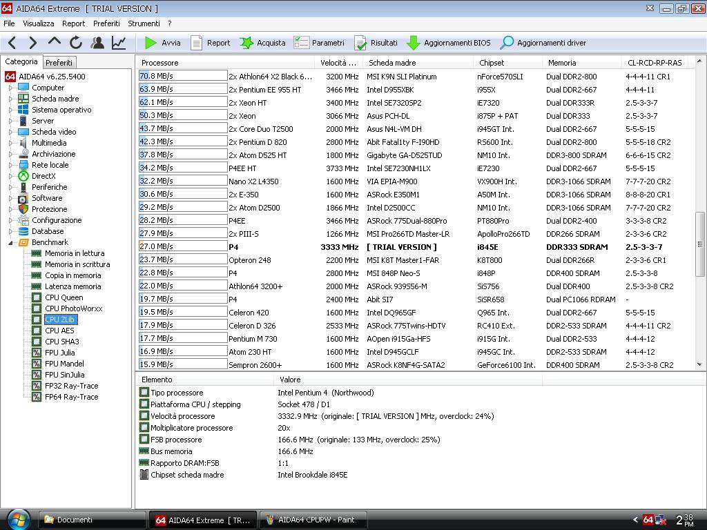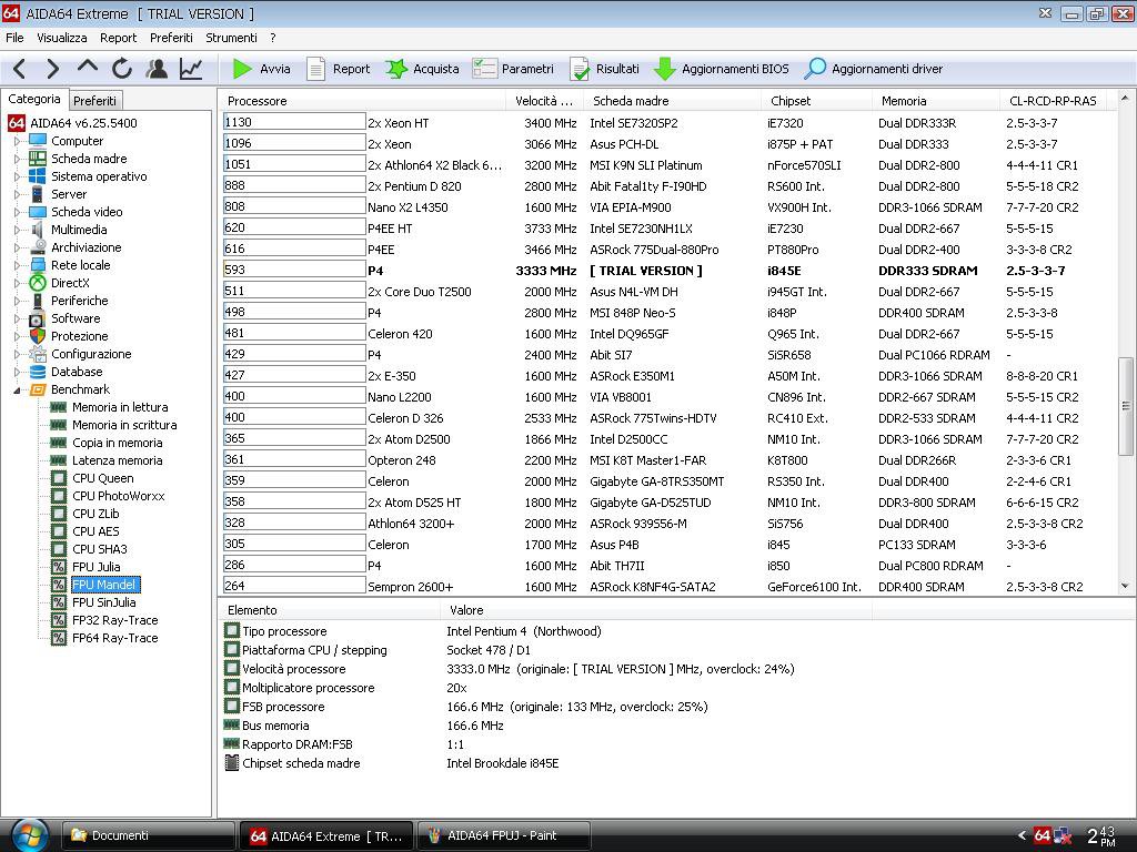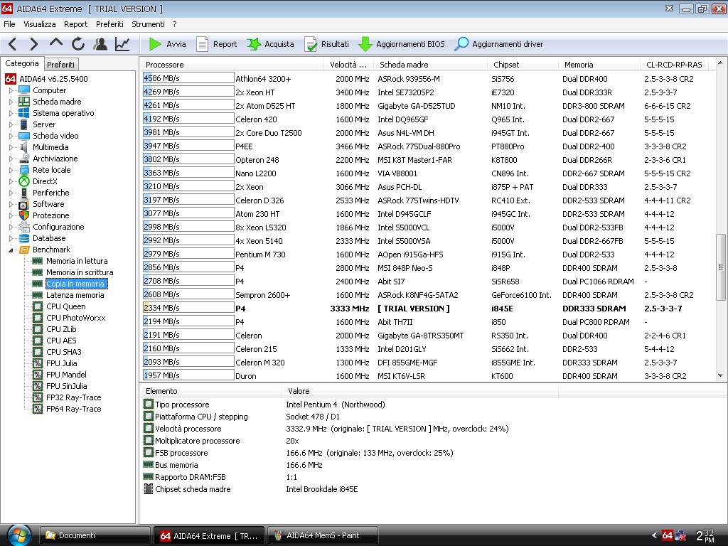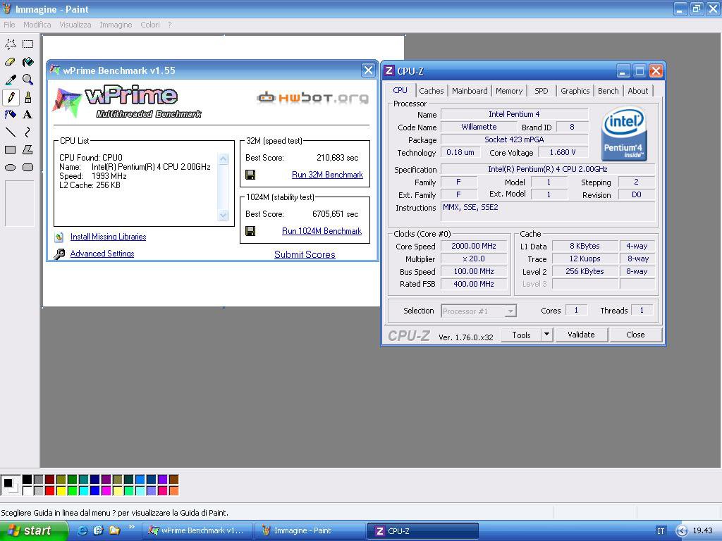 Come CPU ovviamente ho usato un Northwood, esistono anche Prescott 1M/533, ne ho visti alcuni con alte freq. come il 3200, mentre in passato ricordo che avevo visto anche un 3333 (se ricordo bene).